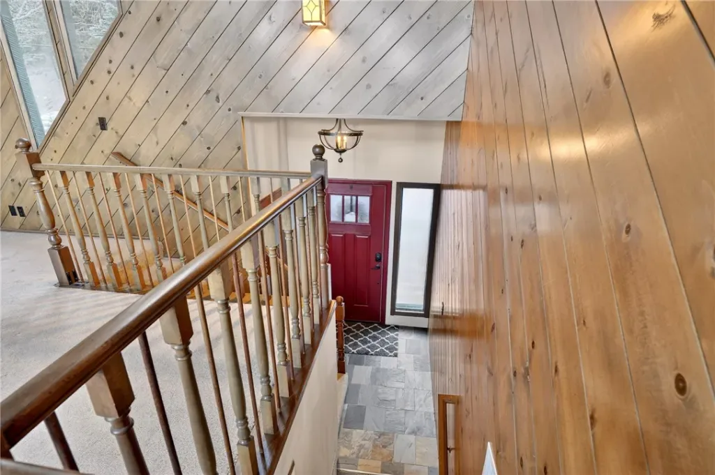 The most beautiful forest & golf course views from this thunderbird floorplan home! The perfect mix of cabin feel & modern convenience with just the right amount of updates. Home has been well maintained & updated including a new roof, decks, exterior rock facade, remodeled kitchen & air conditioning! Nice split level design makes living easy too! Once inside you will find a nice entry area with slate flooring & a coat closet. Great place to remove your shoes and head on in! Go up 1/2 flight to the main level & enjoy the vaulted ceilings, wall of windows, and a beautiful rock fireplace. This area is filled with beautiful natural light from windows facing both east & west. On the main level you will also find a nice size dining area & adjacent remodeled kitchen. Beautiful quartz countertops & new appliances along with LVP flooring. Two new sliding glass doors from the dining & living room take you to the huge rear deck. Check out the golf course and far ridgeline & forest views. This level also has a large bedroom & a full bathroom with double vanity & sunken tub. Back down the stairs you will find a very large family room area which features a wet bar, another fireplace, a laundry room & access to outside. There is also another bathroom on this level along with 2 good sized bedrooms. Room for everyone! This level also has it’s own deck! This home is move in ready and could be available mostly furnished. Great neighborhood close to the golf course & Blue Jay. Also located on a plowed & maintained road for excellent year round access! A must see for those looking for a move in ready getaway!