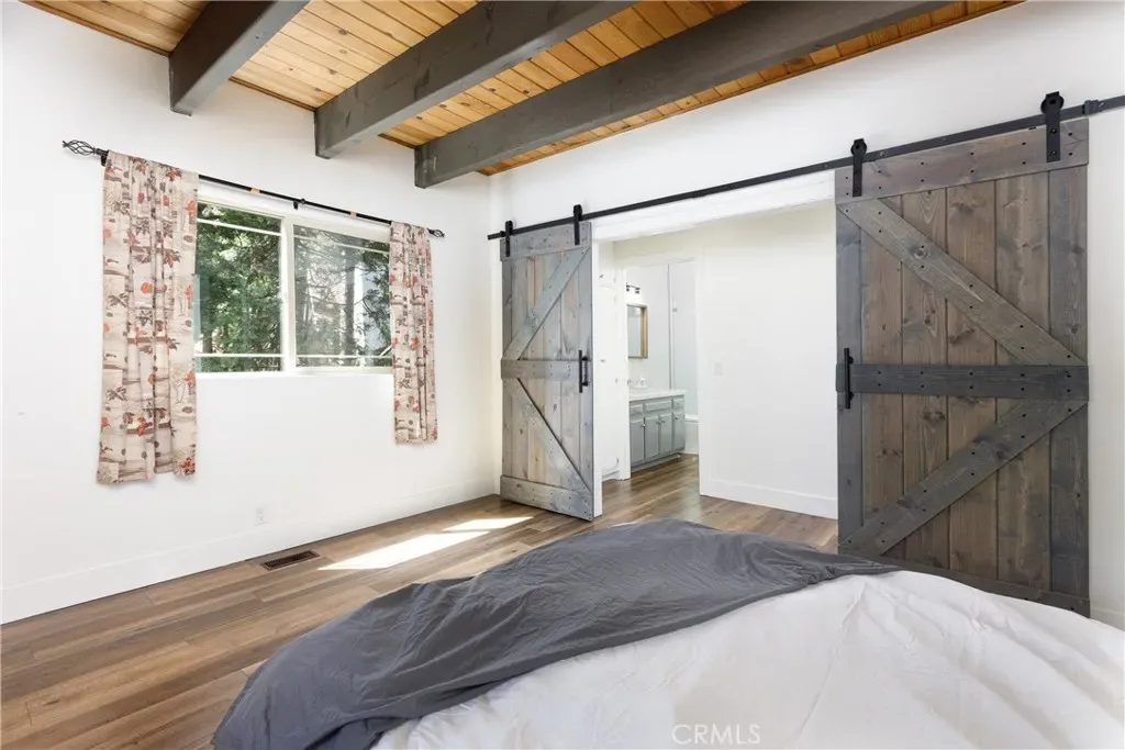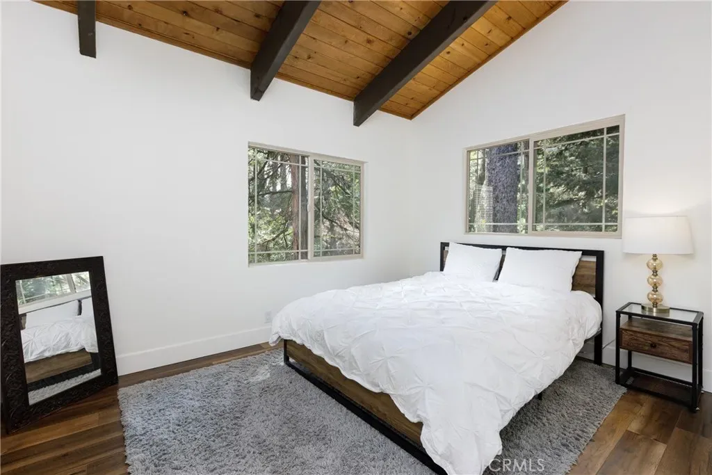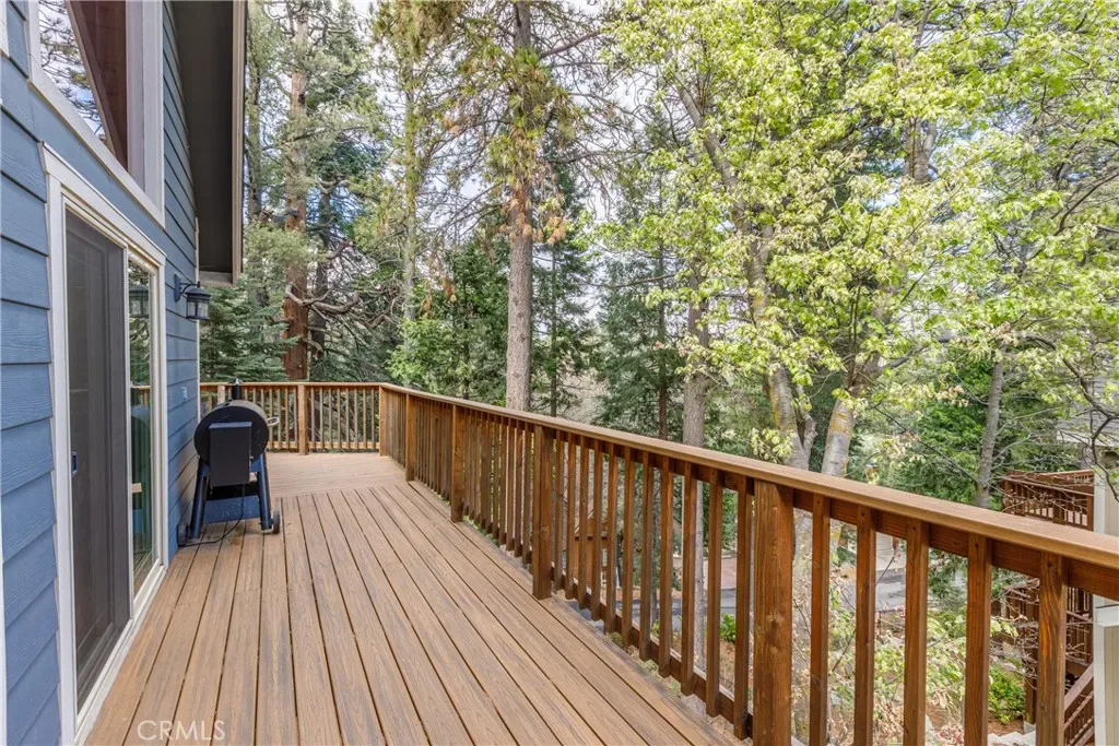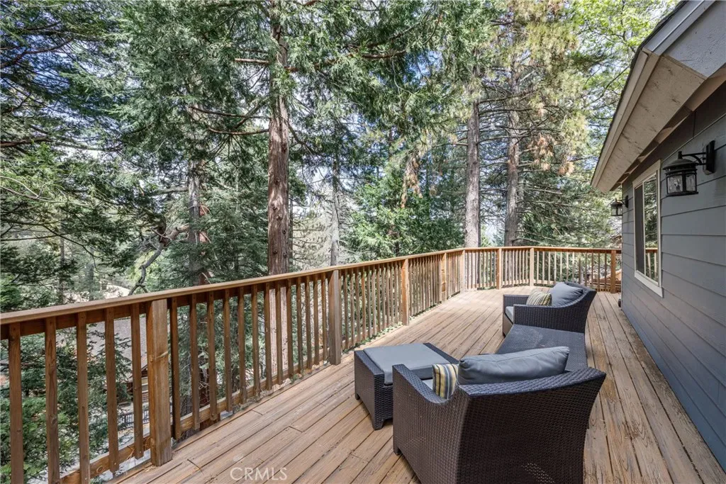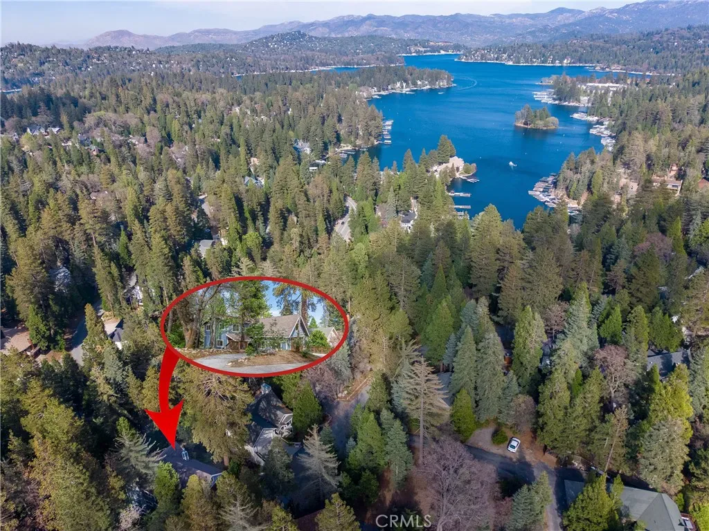 Beautifully remodeled Lake Arrowhead home with lake rights, blending modern design with warm mountain charm. Enjoy level street access and level entry into an extra-deep garage, ideal after a day at the lake. Inside, the dramatic living room features soaring wood-beamed ceilings and floor-to-ceiling windows, filling the space with natural light and framing serene tree views with a peek of the lake. The open layout flows to the dining area and updated galley kitchen, creating an inviting space for everyday living and entertaining. The fresh remodel showcases crisp white interiors, rich wood tones, and stylish lighting, offering a clean, elevated mountain aesthetic. Step outside to spacious composite decks, perfect for relaxing, dining, and enjoying the peaceful forest setting. Flexible floor plan includes main-level bedroom and bath, plus two upstairs bedrooms, full bath and a loft-style sitting area overlooking the living room. The finished lower level offers a large family room with access to a generous rear yard area. Major upgrades include Hardie cement siding (25-year color), 50-year roof, and dual-pane windows. Additional features: wood-burning fireplace with gas starter, direct garage access, underground utilities, additional driveway, covered front deck area and county-maintained/plowed road. Located just a short distance to the lake, shopping, and dining, this home is ideal as a full-time residence or weekend retreat. Furnishings may be available—turnkey opportunity.
