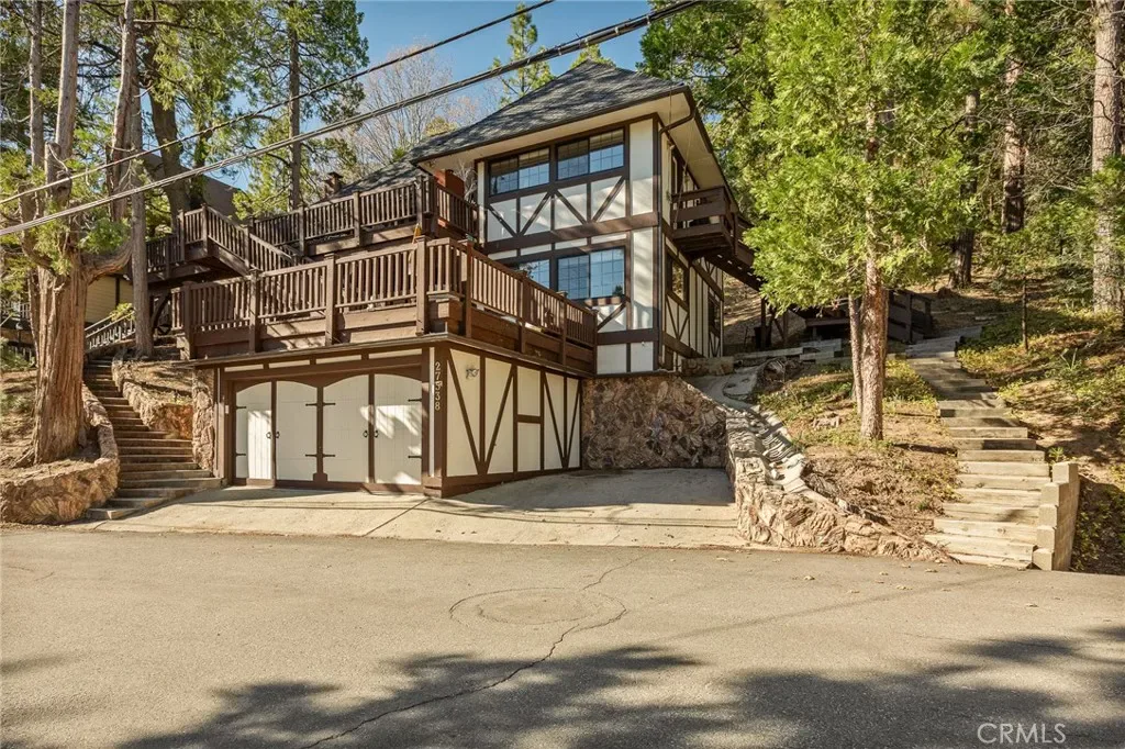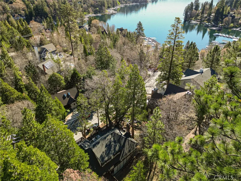 Welcome to Your Dream Lake House Retreat in the highly sought-after North Bay neighborhood of Lake Arrowhead! This charming home is positioned just across the street from Arrowhead Lake Association trail access, a great starting point for a hike on the lake and weekend get-away! It offering full lake rights, stunning winter lake views and outdoor spaces perfect for sunny summer days. Expansive decks invite you to relax and take in the year-round beauty of this gorgeous mountain town. Inside, experience the perfect blend of timeless charm and modern luxury. Original custom woodwork brings a warm, inviting character to every room, such as updated bathrooms and laundry featuring premium tile & glass, and custom fixtures throughout. Vaulted ceilings and exposed wood beams create a spacious yet cozy atmosphere, with walls of windows that frame serene mountain views. Evenings are perfect by the fireplace or at the full bar, while a separate lounge area offers a sophisticated space for media, card games, or a casual tasting night. The upstairs includes a spacious guest room with a large storage closet—ideal for future expansion or customization. The primary is tranquil and opens to the lower deck for an easy stay. Whether you’re looking for a cozy family retreat or a stunning space to entertain, this home strikes the ideal balance between rustic tradition and upscale comfort. Make your lakeside dream a reality! Don’t miss this chance to own a true Lake Arrowhead lakeside dream in one of the most desirable neighborhoods—schedule your viewing today!