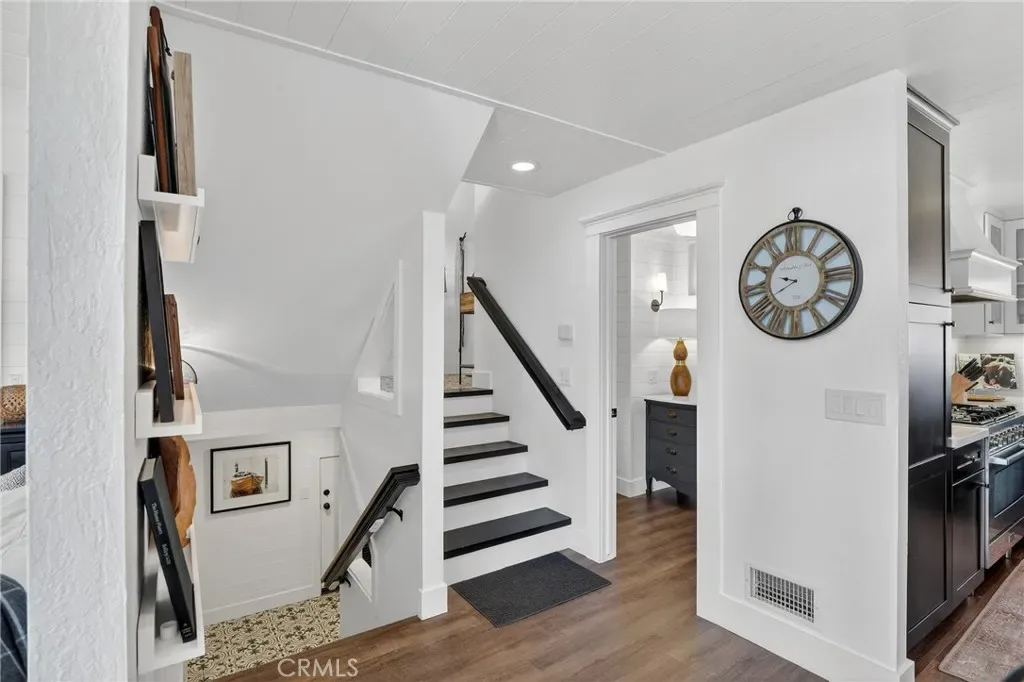 The design embodies a sophisticated Modern Mountain aesthetic, highlighted by a stunning tuxedo-style kitchen featuring a solid white farmhouse sink, commercial-grade appliances, and a custom iron island. Beautiful LVP luxury waterproof flooring flows throughout, complemented by custom shiplap walls and ceilings that add warmth and character.