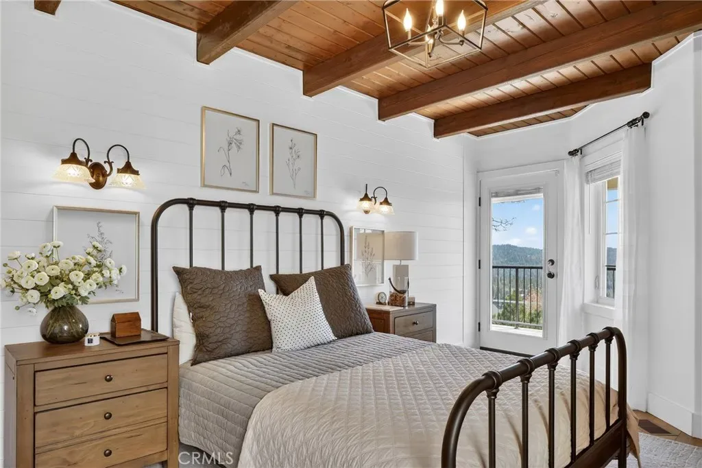 All bathrooms have been professionally designed to perfection, including a show-stopping antique chandelier in the primary bath that adds timeless elegance. Additional features include two fireplaces, new windows, auto blinds on most windows, updated electrical wiring, and refinished original ceilings and beams that preserve the home’s charm.