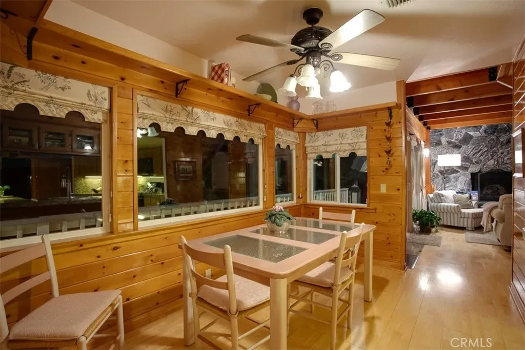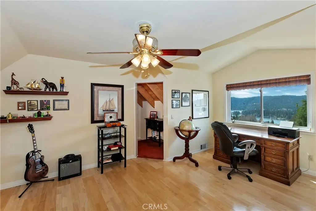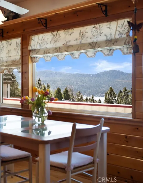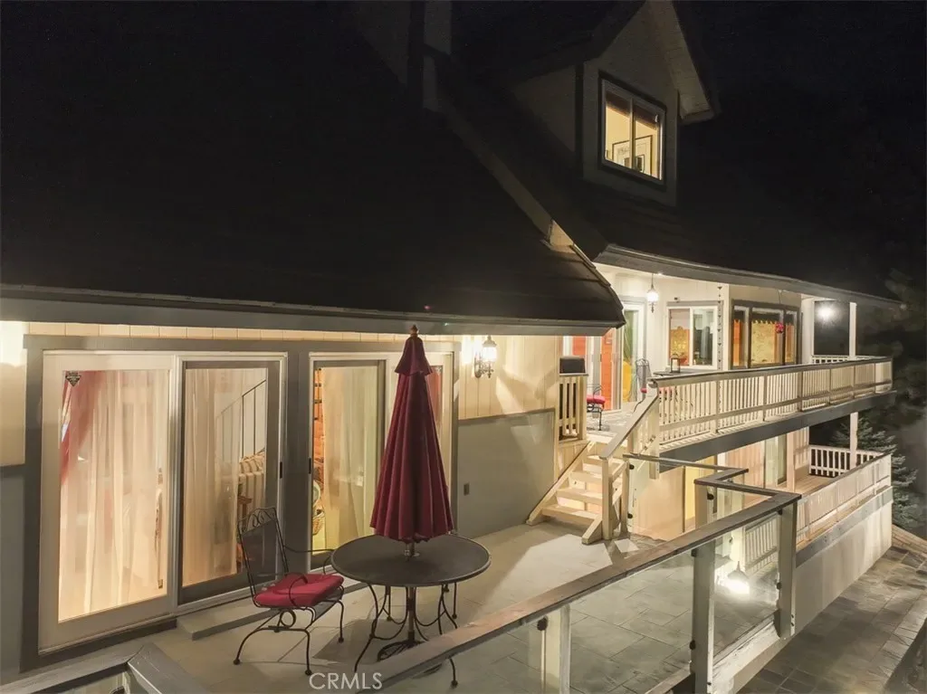 Overlooking beautiful Lake Arrowhead and just a few minutes’ stroll from the National Forest with Lake Rights is this lovingly maintained Lake View home – the perfect mountain retreat! Premier location for watching the Fourth of July Fireworks! Beautifully landscaped exterior and an interior with 10 glass sliding doors and transom windows to bring in copious amounts of natural light and beautiful lake views. This spacious home has 3 separate living areas (Living Room, Family Room and Game Room) 4 or 5 Bedrooms and 3 Baths. The Slate covered front porch now has stunning new front door and sidelights. The Great Room has a beautiful floor-to-ceiling fireplace which is the home’s centerpiece showcasing the honey tongue and groove walls and providing the perfect gathering space for friends and family. Directly outside is an inviting lake view deck with areas for al fresco dining, reading, watching the wildlife or just listening to the breeze rustling through the pines. The living area flows into the open breakfast room and kitchen with pantry, beautiful granite countertops, under cabinet lighting and storage galore. There is currently a formal Dining Room with Wet Bar which can easily be converted back into the main level Primary Suite with updated attached bath with dual sinks, granite countertop, beautiful lighting fixtures, walk-in shower and closet. There is also a cozy Family Room with Fireplace and wet bar. Hardwood flooring throughout!. Upstairs is a large workout room or 5th Bedroom with Vaulted Ceiling, a spacious office with closet and incredible lake views and, for the kids, the BEST Play Room! Downstairs are three private bedrooms with a full bath and an additional ¾ Bath. There is also a spacious Lounge/Game Room with its own exterior Slate patio, Closet and access to the Wine Cellar. Furnished per Positive Inventory List! Amenities include Concrete Tile Roof, Natural Gas Whole House Generac Generator, Dual Pane windows, 2 Zoned furnaces, Battery Backed up Hot Water Heater and great storage. Parking for 8 cars and a boat on 2 plowed roads. Most importantly, the home has lake rights to private Lake Arrowhead and is just a few minutes’ drive away from Tavern Bay Beach Club! This lofty home would make the perfect primary home, extended family retreat, vacation home, rental or investment property. Come on up and enjoy the fresh mountain air and all Lake Arrowhead has to offer and make your Lake Arrowhead Dream a Reality!