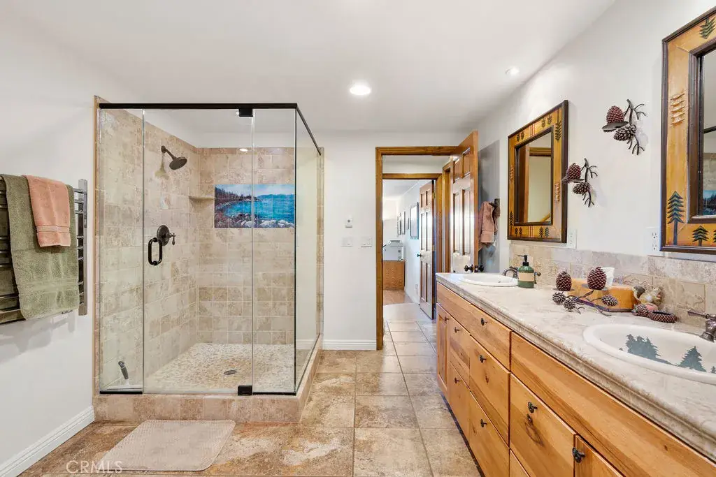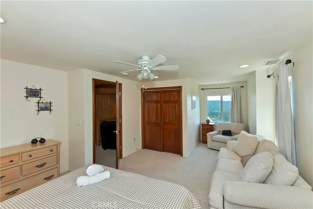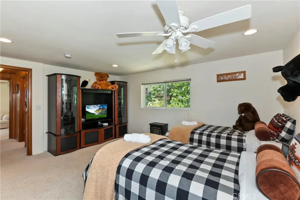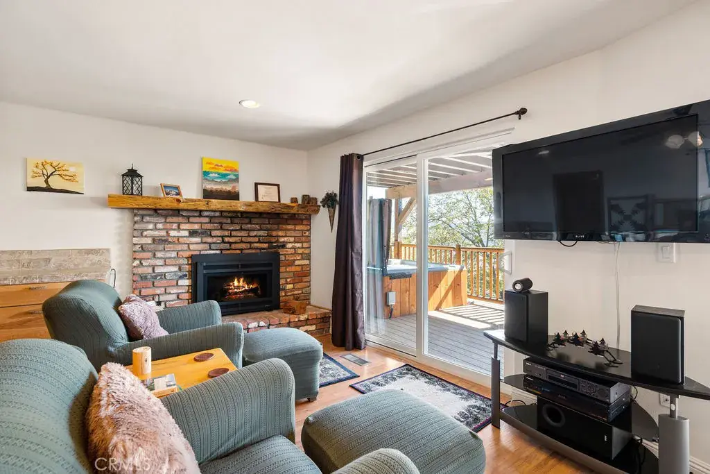 LAKEVIEW, check. BELOW MARKET PRICE, check. SUCCESSFUL STR/AirBnB History, check. Look no further — THIS IS IT and the seller is MOTIVATED (recent MAJOR price reduction). Wow! …will be your jaw dropping reaction when you enter this wonderful turnkey A-frame/prow mountain motif home – with LAKE RIGHTS – and see your unobstructed lake view and panoramic ridgetop views, including nearby Snow Valley and San Gorgonio, all from your deck chairs and firepit. This lovely home, with a great “cabin feel” and near level entry, exudes relaxation and fun, from the nearly 1,500 SF of lake view deck space, to the game room with a two in one game table with billiards, and table tennis. Don’t forget the relaxing Jacuzzi spa! The kitchen features hickory cabinets, recently updated stainless steel appliances, and a new LG refrigerator. Relax in the spacious A-frame/prow great room, with terrific lake and mountain views, and enjoy a cozy fire in your Regency airtight wood burning stove. The large primary bedroom offers breathtaking views, deck and spa access, a gas insert fireplace for easy fires late at night, and plenty of built-in dresser space, along with a spacious walk-in closet. The primary bath boasts a dual sink, a separate walk-in shower and jetted tub, as well as heated floor tiles and a heated towel rack! The additional two large bedrooms upstairs offer more lake views and quiet sitting areas. The main level game room could easily be converted to a fourth bedroom. All three bathrooms have charming, designer touches including mountain themed backsplashes and painted sinks. Be comfortable year-round with central heat and air conditioning. The home also has a laundry and work room, and a concrete and insulated basement for plentiful storage. This home is a successful, high demand STR – producing a strong income flow – with all 5 star guest reviews and a highly rated AirBnB host. This turnkey, unobstructed lake view house at this price point is a rare find on the mountain. Seller is motivated, as evident by the below market pricing. Come see this gem now, and start enjoying the lake lifestyle at its finest!