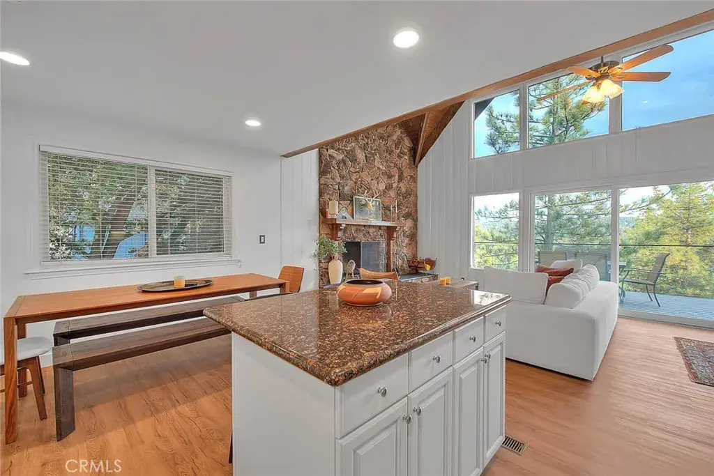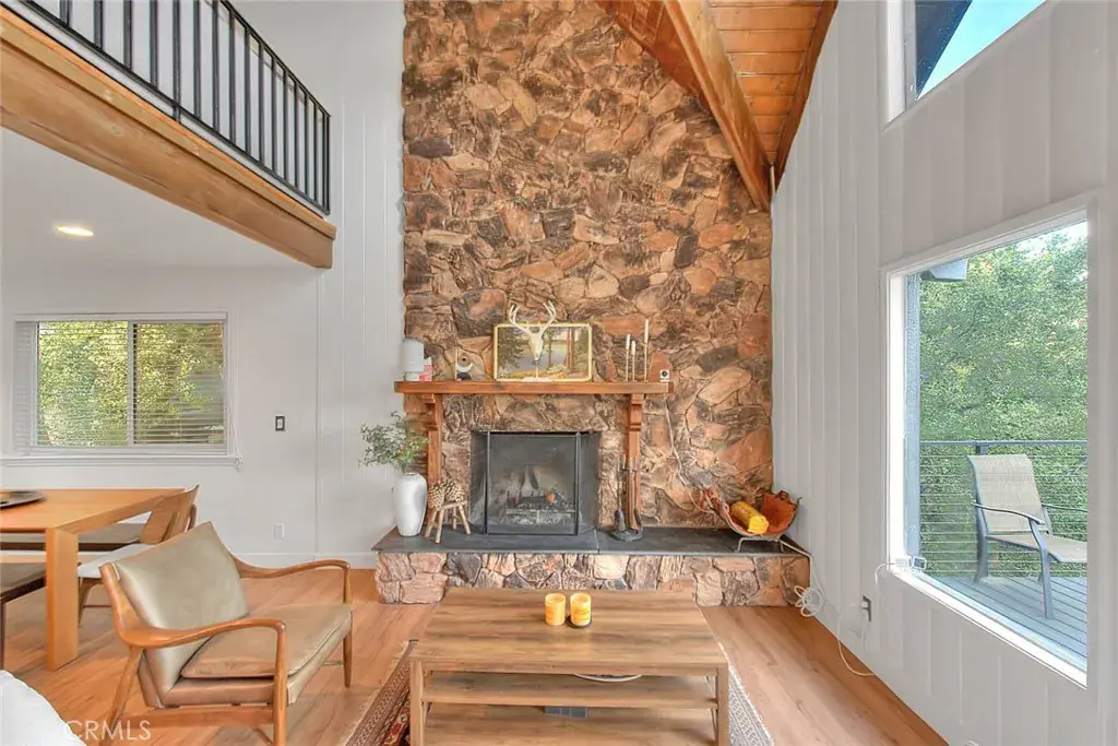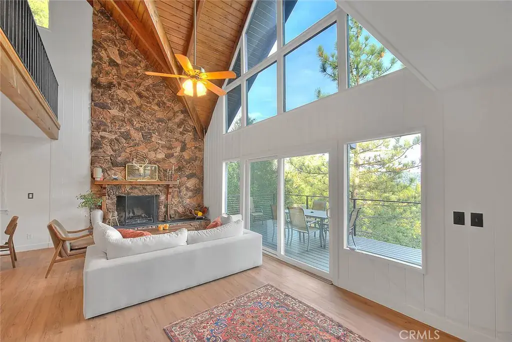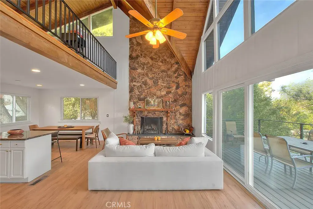 **Modern Mountain Retreat in the North Bay of Lake Arrowhead** Tucked into the pines with effortless curb appeal and level entry, this fully updated Lake Arrowhead retreat blends classic charm with modern upgrades. Recent improvements include a new Trex deck with cable railing, a new retaining wall, and fresh asphalt that creates an inviting and practical arrival experience. With level parking for multiple cars, a boat, or an RV, access is easy and snow-season ready.