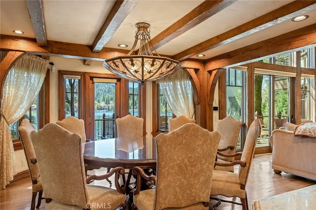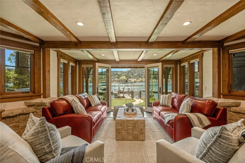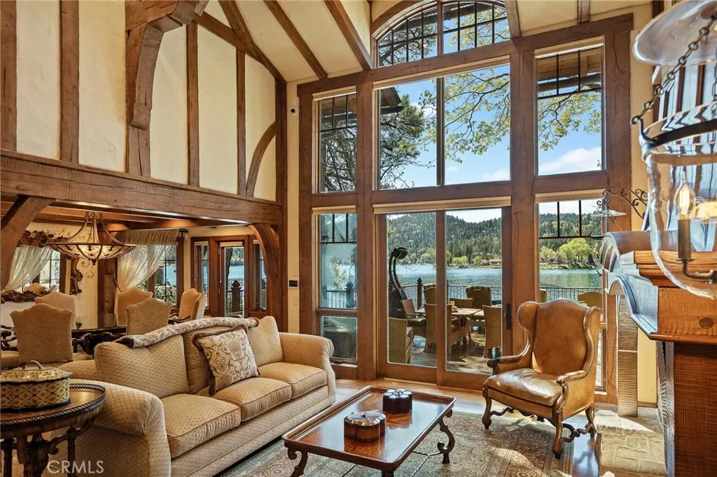 Set directly on the lake with two private boat docks, this fully reimagined English Tudor estate is one of the most distinctive and irreplaceable properties in Lake Arrowhead.
