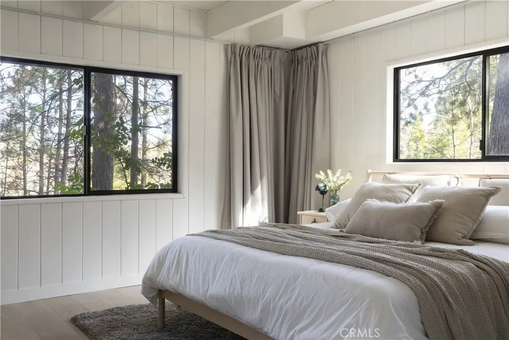 Perched in the pines of Lake Arrowhead, this striking architectural retreat reimagines a classic 1960s cabin into a sophisticated, modern mountain escape. Designed by Dan Brunn Architecture, a renowned firm known for thoughtful residential work, the home is defined by its rare double A-frame form, blending iconic character with a refined, minimalist palette inspired by Scandinavian and Japanese influences. Original wood elements were preserved and revived through walnut blasting, bringing warmth and authenticity to the contemporary upgrades throughout. Spanning three levels, the layout offers restful privacy on the lower floor with the primary suite, vibrant gathering spaces and a guest suite on the main level, and a dramatic loft retreat above. The central living room is anchored by a tumbled-boulder fireplace and framed by tall glass that captures sweeping forest views. A custom terrazzo countertop, navy Fenix cabinetry, and curated lighting elevate the kitchen and dining space into a true showpiece, while mid-century influences and soft textures add depth and comfort. Outdoor living takes full advantage of the setting, relax on the deck overlooking the trees or soak in the jacuzzi and breathe in the crisp mountain air. Just beyond the backyard, a forest trail leads directly to the UCLA Conference Center and Tavern Bay Beach Club, only a short walk or easy golf-cart ride away, placing you in one of Lake Arrowhead’s most desirable locations. Sustainability guided the transformation, preserving the original structure while enhancing comfort and style. Perfect as a high-end investment or true mountain vacation home, Arrowhead Double A-Frame is a rare opportunity where architecture and nature meet in perfect harmony, just moments from the lake.