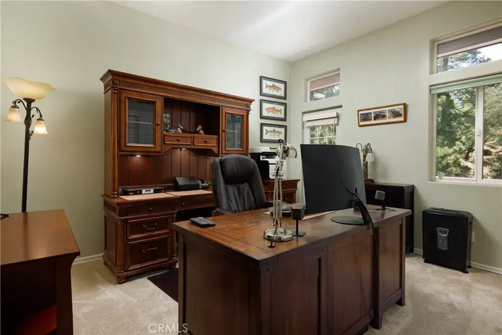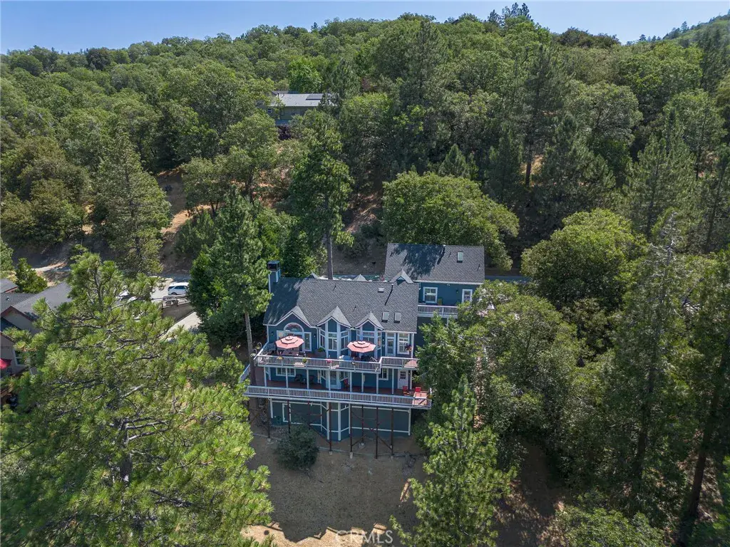 Have you yearned to be quiet, breathe deep…commune with your surroundings…sit on your southern-style covered porch and watch the snow fall? Or look down at your own private forest while barbecuing your dinner on your rear deck, watching deer, bobcats, even bears meander through the forest? You can feel the hospitality of the house and neighborhood from the minute you drive up. There’s ample parking with a 3 car garage and covered carport as well, with level access into the home as well. You enter into an airy living room with soaring vaulted ceiling and a center point floor to ceiling fireplace with raised hearth, made to be sat on for reading an exciting book. You can almost see the stockings hung on the mantle! Gorgeous newer hardwood floors add warmth to most of the main floor. A formal dining room is somewhat open to the living room on one side and the kitchen on the other. The kitchen is oozing with warmth. A large island holds the 5 burner Jenn-Aire gas cooktop with downdraft. There are two built-in electric Jenn-Aire ovens for those big holiday meals and a huge Jenn-Aire refrigerator. The laundry is conveniently located on the main floor as well as a charming powder bath. Upstairs is a true primary retreat with small loft area perfect for a home office or those morning yoga stretches. The bedroom has newer carpet, a romantic fireplace and spacious ensuite bath with walk-in shower and separate tub. On the lowest level you’ll find a cozy den/TV room perfect for cuddling up on a sofa with your popcorn and watching movies. 3 more spacious bedrooms and another full bath take up the rest of the lower level. There are spacious decks on all three levels that look over your private 1+ acre forest. Another bonus space is on this level as well a partially finished 800 sq ft space with 2 double doors to do with whatever you can dream of…another full bath and bedroom, a granny suite? An ADU perhaps? A dream workshop, a gym? There’s plumbing available, so dream away! Out one side of this bonus space is the covered parking/carport accessed by a long driveway. There’s a Generac generator for a pouter outage. This house has it all, ready for graceful mountain living and entertaining.