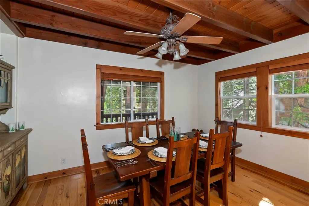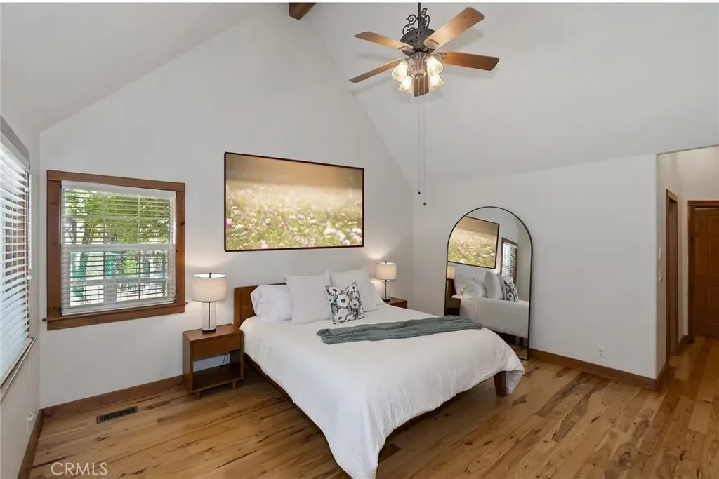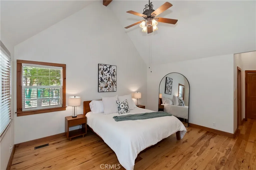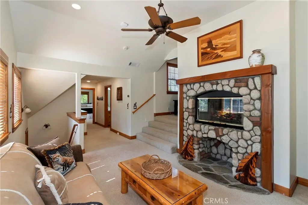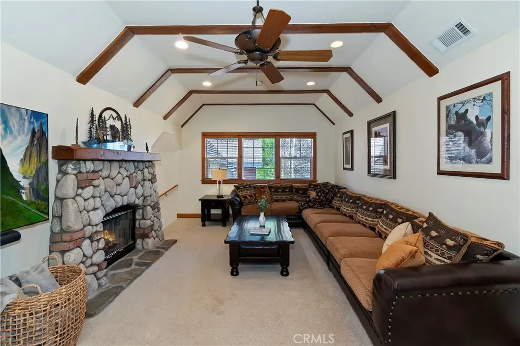 Tucked away on the desirable south side of Lake Arrowhead, this beautiful mountain retreat offers a combination of FULL LAKE RIGHTS, privacy, & exceptional convenience. Set back from the road on a generously sized parcel with a covered front porch, the home enjoys a peaceful, secluded feel & provides dual access & level entry through a landscaped, fenced yard & the attached garages. Inside, the home welcomes you with abundant natural light & an inviting mountain ambiance. The thoughtfully designed floor plan features 4 spacious bedrooms + 2.5 baths, with 2 of the bedrooms offering oversized proportions. The main level primary suite creates a private sanctuary, complete with a spa-like bathroom designed for relaxation after a day at the lake or on the trails. The layout is ideal for both everyday living and entertaining, with multiple gathering spaces that allow everyone to spread out comfortably. At the heart of the home, you’ll find both a separate family room & a dedicated den, connected by a striking two-sided fireplace that adds warmth & character to each space. Whether hosting friends for a cozy evening or enjoying a quiet mountain morning with coffee by the fire, these rooms offer a welcoming atmosphere that defines the Lake Arrowhead lifestyle. The home’s layout & positioning allow for excellent natural light throughout, enhancing the open feel and highlighting the beautiful surroundings. Large windows bring the outdoors in, creating a bright and uplifting environment in every season. Car enthusiasts, boat owners, & outdoor adventurers will appreciate the attached 4-car garage configuration, including a double-deep bay designed to accommodate a boat & trailer. Located just minutes from Lake Arrowhead Village, this home places you close to everything that makes the area so special—lakefront dining, boutique shopping, & entertainment. Whether you’re searching for a full-time residence, luxury weekend retreat, or legacy mountain home, this exceptional Lake Arrowhead property offers space, comfort, and the coveted privilege of full lake rights—allowing you to fully experience the beauty and recreation of one of Southern California’s most treasured alpine communities. The floor plan is an outstanding feature for STR guests with the three fireplaces, separate entertaining areas, the main floor primary suite, and level parking and entry. Could come partially furnished.