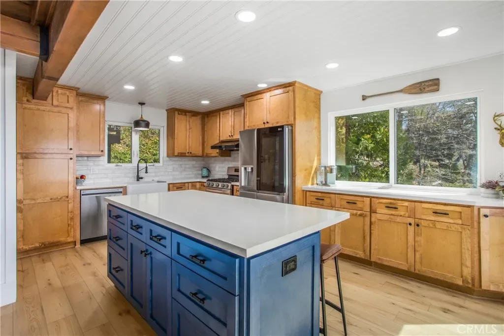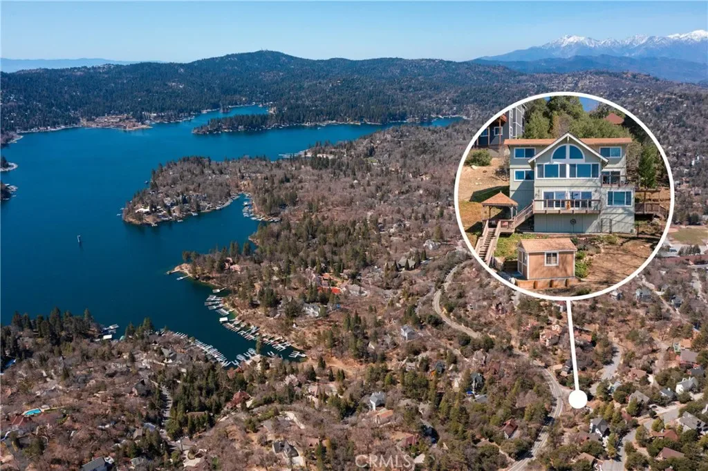 Are you searching for the authentic Lake Arrowhead experience? Imagine starting your day with views from your home of boats, water skiers, and the Arrowhead Queen gliding majestically across the water. Watching the fireworks couldn’t be easier, grab a drink and a snack and pull up your favorite chair! The property includes the neighboring buildable lakeview lot at no additional cost, providing you with half an acre to experience an outstanding Lake Arrowhead lifestyle. This impressive custom lodge-style home boasts stunning views of our glistening mountain lake from each of its three floors and every bedroom. The current owners have made extensive upgrades, including a remodeled custom kitchen with high-end cabinetry, new stainless appliances, a new furnace, new high efficiency water heater, new LVP flooring on the main floor, and new dual-pane windows. The property is easily accessed from the priority plowed main road through double sliders into the family room or via a separate access road through beautiful stained glass double doors on the main floor. The home features an ensuite primary bedroom on the main floor, a guest bedroom downstairs, and two additional guest bedrooms upstairs separated by the office/library, a full bathroom on each floor. The main floor boasts a soaring wood-burning fireplace that complements the cathedral beamed ceilings, which are a consistent feature throughout the home. The formal dining room offers a scenic view of the lake and mountain ridgeline, along with access to the upper deck that features a fully plumbed gas grill. Downstairs, the family room includes a full-size pool table, a wet bar, a double-sided gas fireplace, and its own deck, making it perfect for entertaining guests. This home blends rustic charm with modern finishes and features a unique highly functional and desirable floor plan. Additional amenities include a whole house generator, air purifier, and a central vac. There is also a fenced pet area with its own deck ideally suited for your furry friends! Although always used as a primary residence, the property is suitable for full-time living or short-term rentals, accommodating up to twelve guests, with driveway parking for at least five cars. Located in “the Woods” and benefitting from full Lake Rights just minutes from the Marina, UCLA, and Tavern Bay Beach Club. Furnished and move-in-ready. Welcome home!