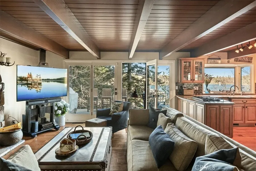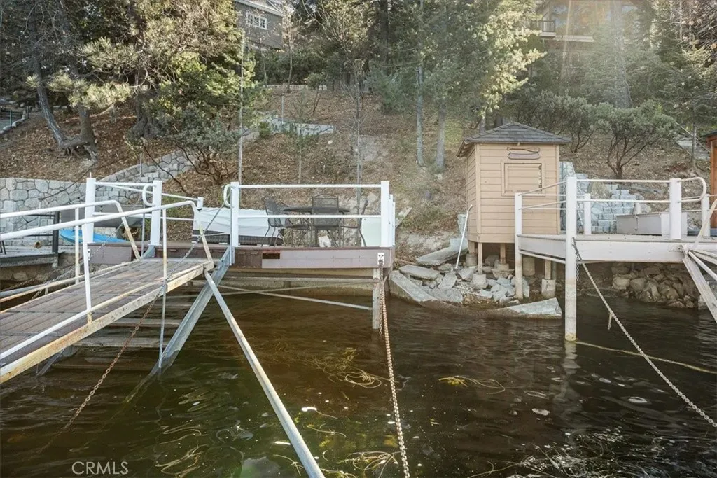 Lakefront in the desirable Palisades neighborhood, with lake and mountain views from every room! Just steps to ALA trail. Come experience mountain-lake life in Southern California’s most prestigious four-season, private lake community just 90 minutes from LA and OC. This home has been tastefully updated with an open floor plan featuring updated kitchen with SS appliances that seamlessly connects to dining room on one side and large living room with stone fireplace on the other with direct access to main floor deck. The upper floor offers 3 generous bedrooms including master en-suite with soaking tub and balcony overlooking the lake. The lower level offers a fourth bedroom family/game room and additional bathroom with direct access to lower deck. Home sits right on the ALA trail and is just a short stroll to the ½ dbl dock that is included. Recent updates include roof, windows and doors, interior wood flooring, maple cabinetry, granite counters & SS appliances. Home has parking deck for up to 4 cars, central A/C and is move-in ready. Come start making memories today!