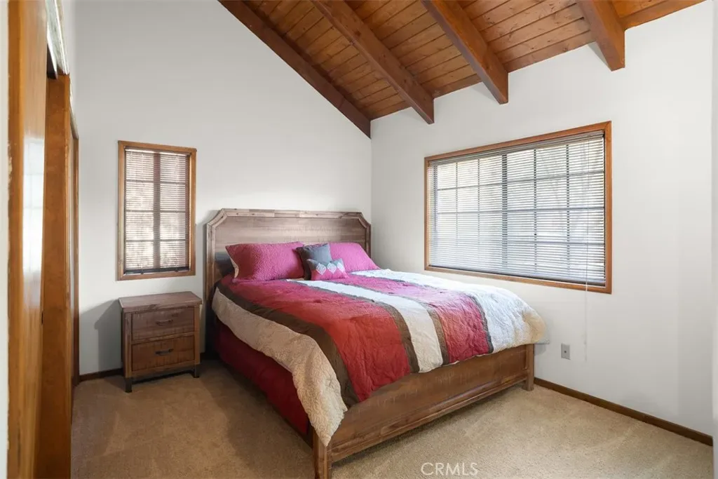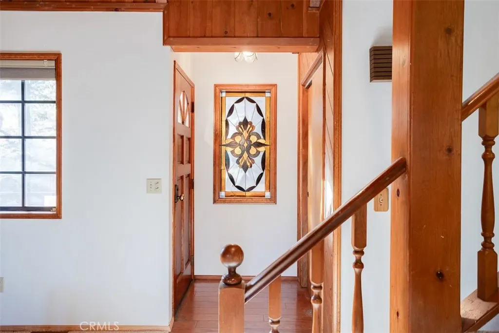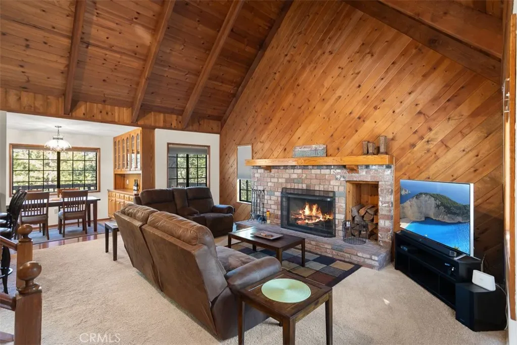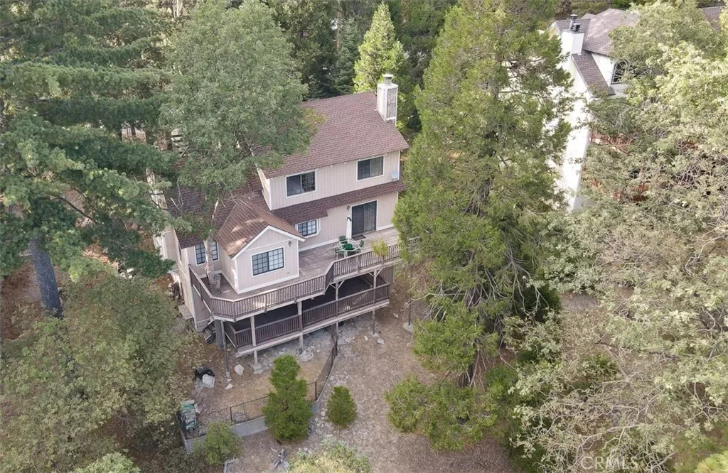 Discover your mountain sanctuary in this spacious and inviting home on a quiet street with Lake Rights! Beautiful forest views and a large, treed lot make the perfect retreat. Step into the entry with a stunning Stained-Glass window that brings ethereal light into the home. The wood Cathedral Ceiling in the Living Room above the massive brick fireplace is the essence of mountain ambiance. On the main floor is everything you need – a spacious private Primary Bedroom with an en-suite bath, walk-in closet and beautiful forest views, Living Room and Dining Room with beautiful views, a Kitchen opening up to the living area, a Laundry and Powder Room. The large windows bring in natures’ best with views of towering pines and vibrant oaks. The large Deck outside the Dining Room offers plenty of space for the whole gang for Al Fresco dining, listening to the birds, the whispering of the pines or watching the wildlife. Upstairs are three spacious Bedrooms with vaulted wood ceilings and a full Bath for your guests. Downstairs is another Bedroom, another full Bath and a great Game Room with River Rock Fireplace, Bar, Pool/Ping Pong Table and Basketball Shot game! Right off the Game Room is a large, covered deck for relaxation, quiet conversation and convenient access to the dog run below. There is level entry into the two-car garage and level parking off a paved and maintained road that is plowed by the County. Just a few landscape stairs to the front door, this turn-key furnished home is move-in ready! Easy commute down the hill. Enjoy all the mountain has to offer and make your Lake Arrowhead Dream a reality! Home is in need of paint and the price was reduced accordingly; however, Seller has a Notice of Completion for all the Section One Wood Destorying Pest work.