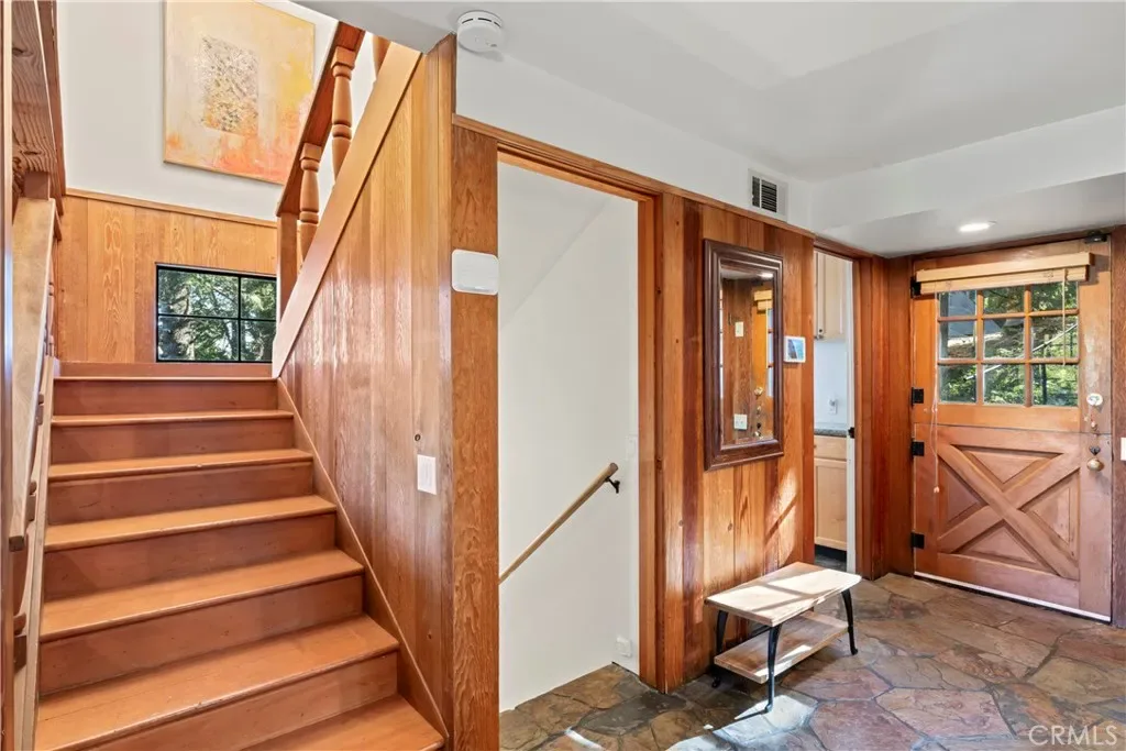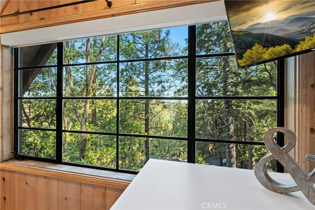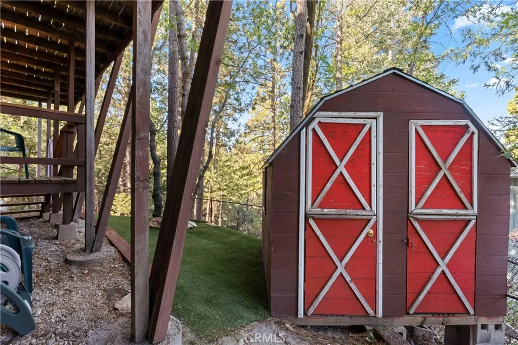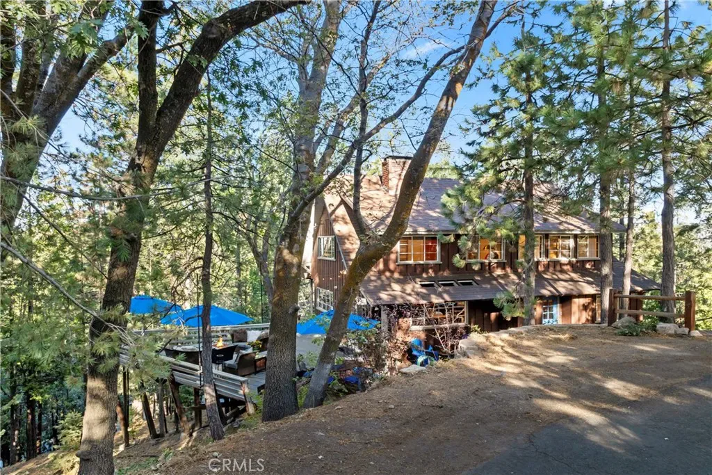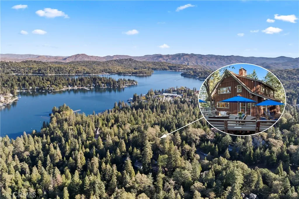 Turnkey Postcard Vintage Charmer located in Arrowhead Woods inclusive of Lake Rights with all the Bells and Whistles while simultaneously Boasting All of The Emotional Essence that the Lake Arrowhead Lifestyle has to offer including a Peek of the Lake! Main Mid-Level Features: Dutch Door Entry, Flagstone Flooring, Granite Kitchen Counters, Vintage Robert Shaw Wester Holly Stainless Steel Oven, Sportsman 4×4 Free Standing Butcher Block, 8 Foot Wood Beamed Ceilings, 3/4 Bath and Laundry Combo, Open Kitchen to Dining Area with Fireplace to Living Room with multiple access to Overflow Outdoor Entertaining Patios. Upper-Level Features: Expansive Open Clear Fir Staircase from Living Room to 3 Comfortable Cozy Bedrooms and Full Bathroom. Lowest Level Features: Spacious Primary Bedroom Ensuite with Brick Fireplace, Soaking Tub, with Access to fenced back yard area astro-turfed for the Pets. Other Features & Upgrades Include: Pex-Plumbing Conversion, Classic Steel Encasement Windows, Whole House Auto Natural Gas Generac Generator, Full Air Conditioning, Whole House Fan, Outdoor Shower, Propane Fire Pit, Monitored Security System, Multiple Cameras, Rear Storage Shed, Wood Enclosure Receptacle for Trash, Partial Sprinklers and Exterior Landscape Lighting.
