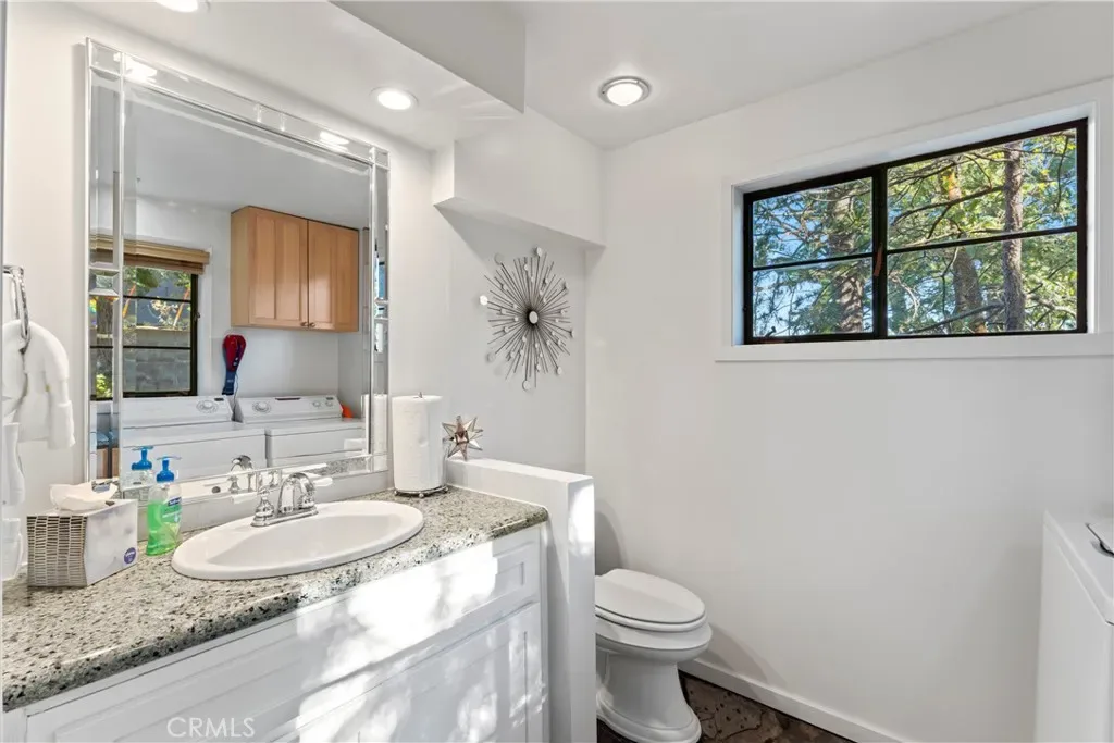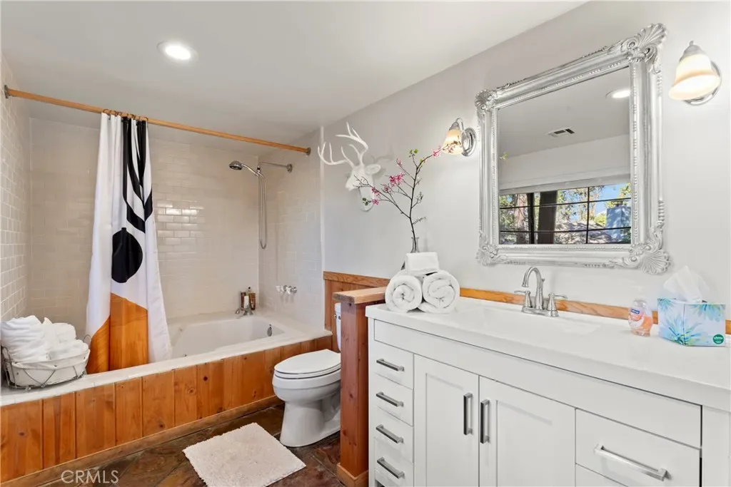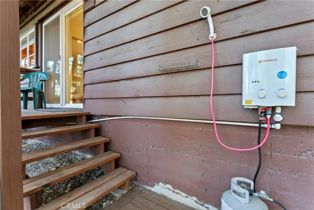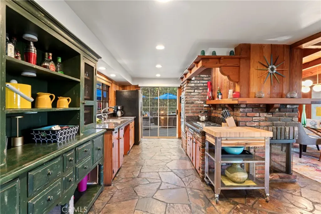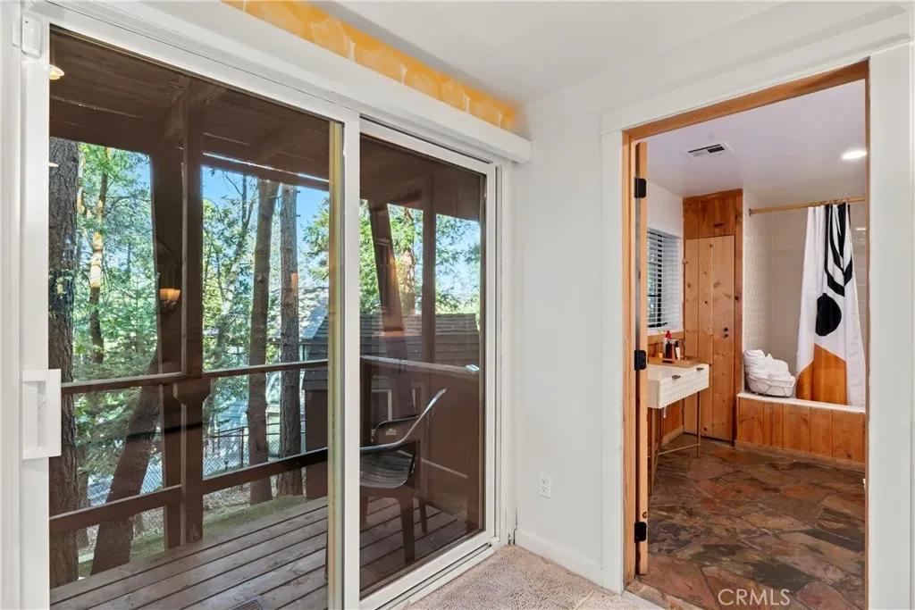 Turnkey Postcard Vintage Charmer located in Arrowhead Woods inclusive of Lake Rights with all the Bells and Whistles while simultaneously Boasting All of The Emotional Essence that the Lake Arrowhead Lifestyle has to offer including a Peek of the Lake! Main Mid-Level Features: Dutch Door Entry, Flagstone Flooring, Granite Kitchen Counters, Vintage Robert Shaw Wester Holly Stainless Steel Oven, Sportsman 4×4 Free Standing Butcher Block, 8 Foot Wood Beamed Ceilings, 3/4 Bath and Laundry Combo, Open Kitchen to Dining Area with Fireplace to Living Room with multiple access to Overflow Outdoor Entertaining Patios. Upper-Level Features: Expansive Open Clear Fir Staircase from Living Room to 3 Comfortable Cozy Bedrooms and Full Bathroom. Lowest Level Features: Spacious Primary Bedroom Ensuite with Brick Fireplace, Soaking Tub, with Access to fenced back yard area astro-turfed for the Pets. Other Features & Upgrades Include: Pex-Plumbing Conversion, Classic Steel Encasement Windows, Whole House Auto Natural Gas Generac Generator, Full Air Conditioning, Whole House Fan, Outdoor Shower, Propane Fire Pit, Monitored Security System, Multiple Cameras, Rear Storage Shed, Wood Enclosure Receptacle for Trash, Partial Sprinklers and Exterior Landscape Lighting.