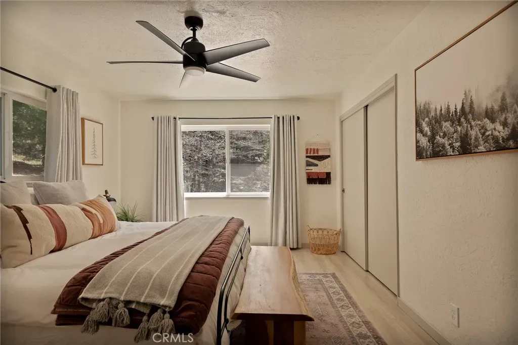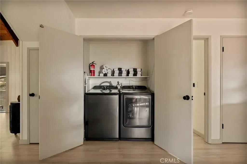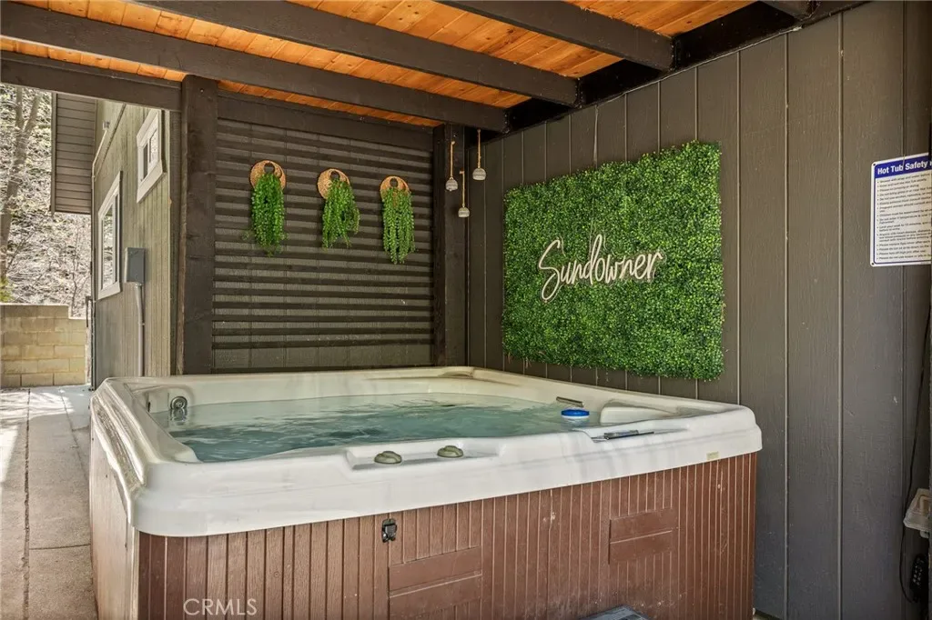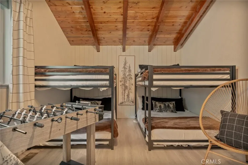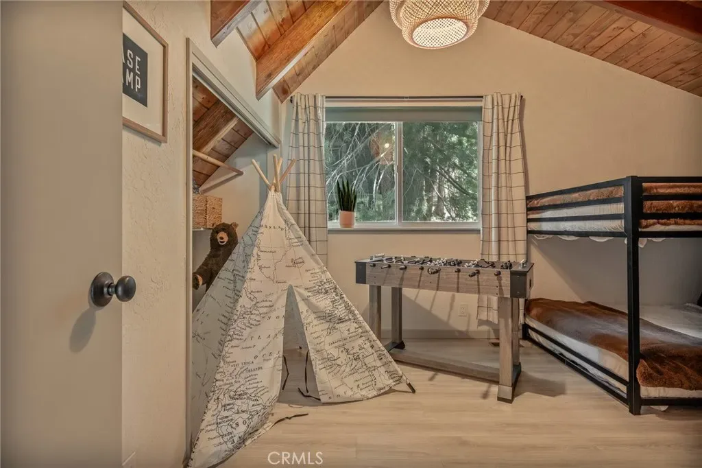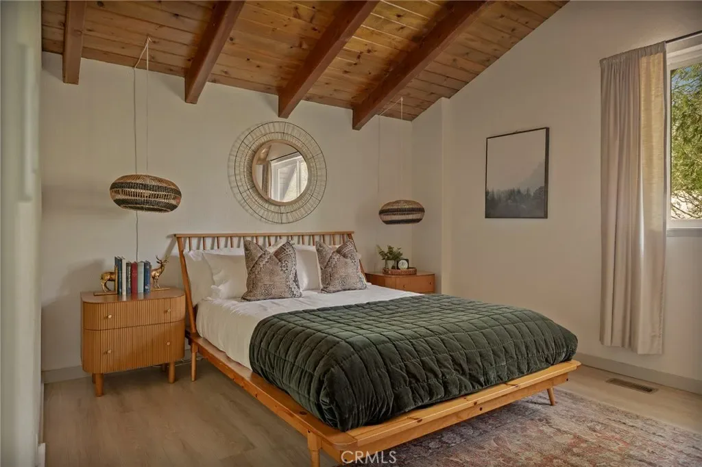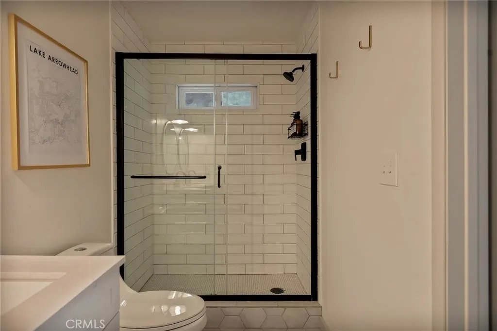 Perched up on the hillside you will find this stunning remodeled home located close to the Lake Arrowhead Village and Hwy 18. Enter in to this stunning high vaulted ceiling open floor concept home with primary bedroom on the main. Home was remodeled in 2020 and boasts an equipped kitchen with Calacatta Quartz counters, black stainless appliances, and a sliding glass door that leads to the expanded front near wrap around deck. The main living room boasts a large rock wall that exudes the focal point of the room. The back area has a covered private spa area that allows you to take in the mountain surroundings. Upstairs is 2 more bedrooms with high ceilings, and a bath. Home has been a successful Airbnb and has been used for multiple catalog branding shoots. Home has been updated with Dual Pane windows, and Pergo WetProtect flooring along with a curated style to exude the current trend. Home comes furnished and is located in Lake Rights. You will find lots of privacy on this lot, tucked in with the cedars, oaks, and dogwoods. Don’t let this one pass you up.