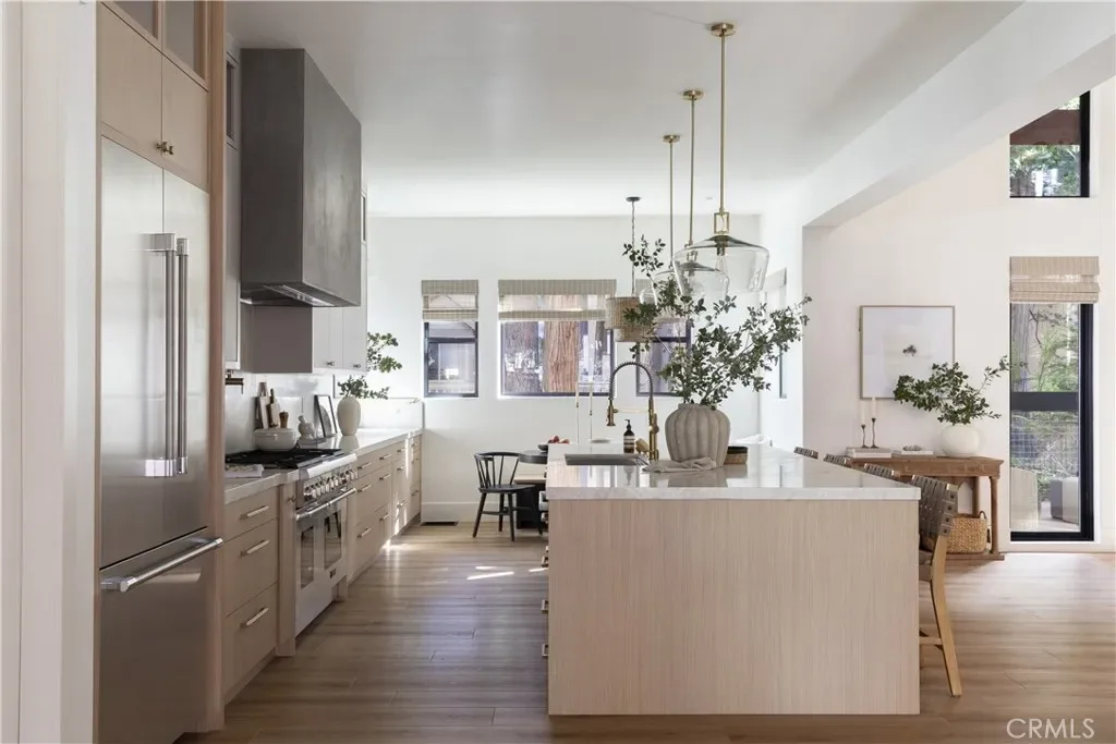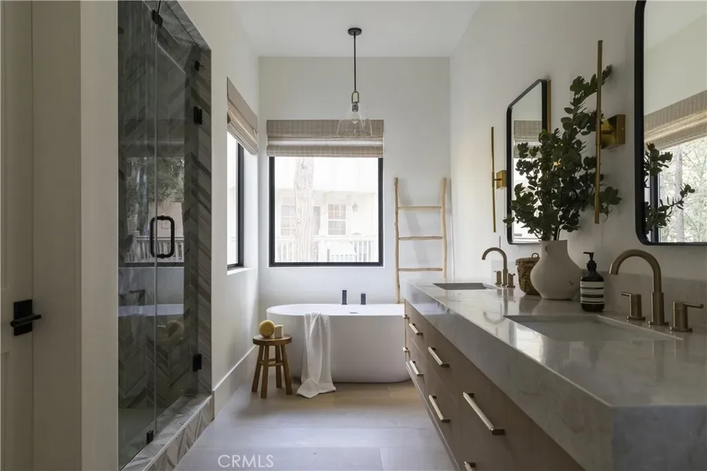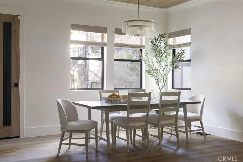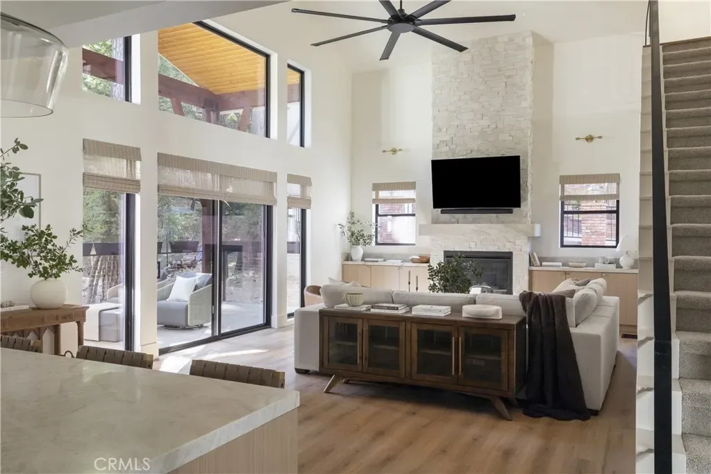 Located within the gated Meadow Shores community, this new construction home offers an exceptional Lake Arrowhead lifestyle with level access and an attached oversized extra deep two car garage with boat storage. Enjoy your walk down to lake access within the community to your brand new half double dock, included in the purchase price. Designed with quality and comfort in mind, the home features custom cabinetry, Taj Mahal quartzite countertops, and a premium Thermador appliance suite including a professional range and refrigerator. Additional upgrades include built in speakers throughout, a full camera security system, and a standby generator for year round peace of mind. The primary suite is conveniently located on the main level, creating an ideal layout for full time living or a refined mountain retreat. Upstairs, you’ll find an additional family room with bar, along with three more bedrooms, including another en suite. This newly built home blends modern finishes, thoughtful design, and access to one of Lake Arrowhead’s lakeside gated communities.