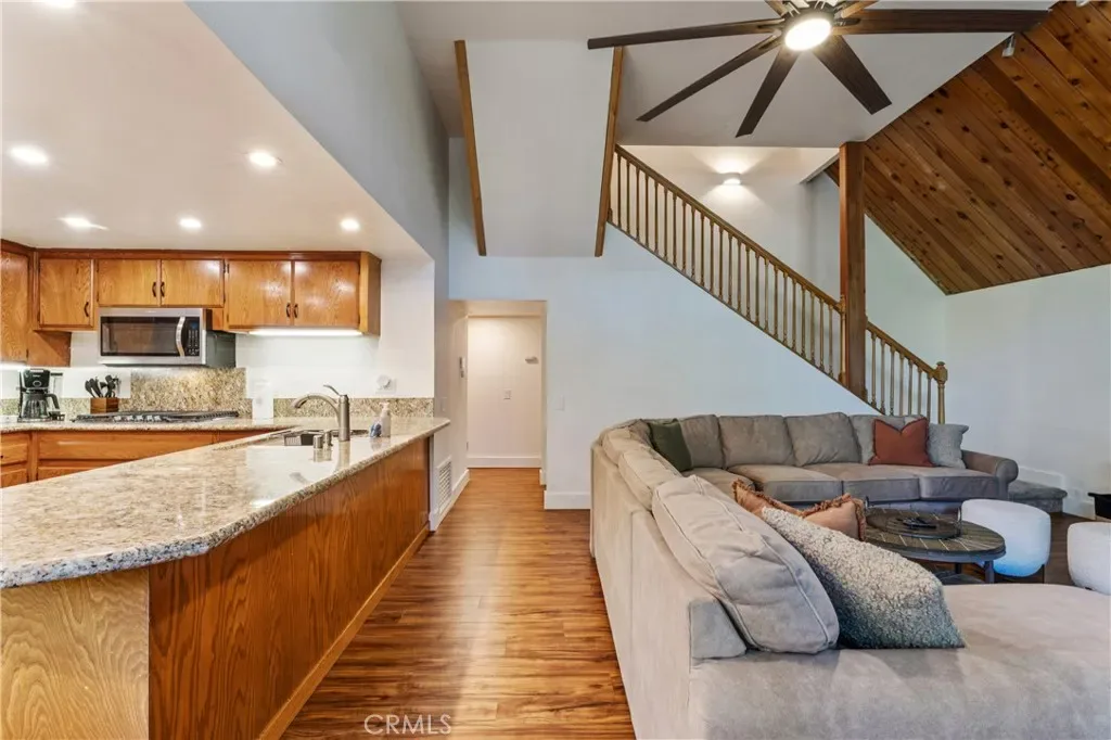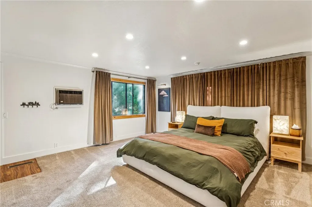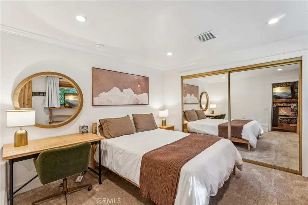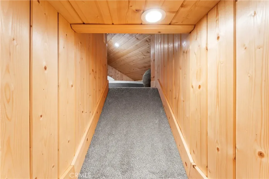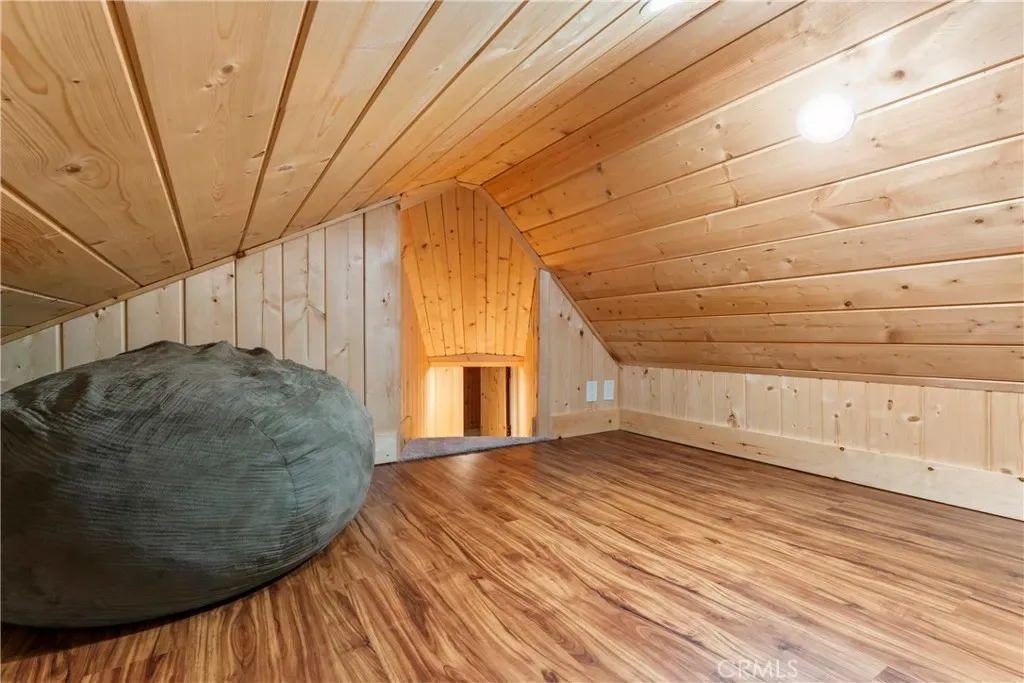 Premier 1st Tier Golf Course Mountain Home with Lake Rights!! Live the ultimate mountain lifestyle! This spectacular updated home is just a short walk to Grass Valley Lake, a quick golf cart ride to Lake Arrowhead Country Club, and includes lake rights. Updated in 2022, the home features 4 bedrooms, 3.5 bathrooms, and approximately 3,253 sq. ft., including a loft and bonus room above the garage. Vaulted wood beam ceilings and abundant natural light highlight the open kitchen, dining, and living area. The kitchen is upgraded with granite countertops and stainless-steel appliances, flowing seamlessly to the living room with a stone wood-burning fireplace and custom barn wood mantel. The dining area includes a custom bench seat and table. Two primary suites on the main and third floors feature attached bathrooms with granite countertops, soft-close cabinetry, and generous closets. The main floor includes a laundry room with washer and dryer. Entertainment options abound with two game rooms: the first-floor room has a TV, fireplace, wet bar, mini fridge, pool table, bedroom, and full bath; the bonus room above the garage. Attached two-car garage with golf cart bay, plus multiple driveways for cars, RVs, or boats. Situated on a private corner lot, the home offers three decks with patio furniture, a recently painted exterior, and a gated spa for relaxation. Sleeps 12+, with kid-friendly features including a secret passageway from the third-floor loft to the bonus room and a custom playhouse with wraparound deck. The bottom floor could serve as a separate suite with a built-in fridge, wet bar, and private entrance. Modern amenities, generous living space, and a prime location with lake rights and close proximity to the golf course make this property ideal as a permanent residence or mountain vacation retreat!