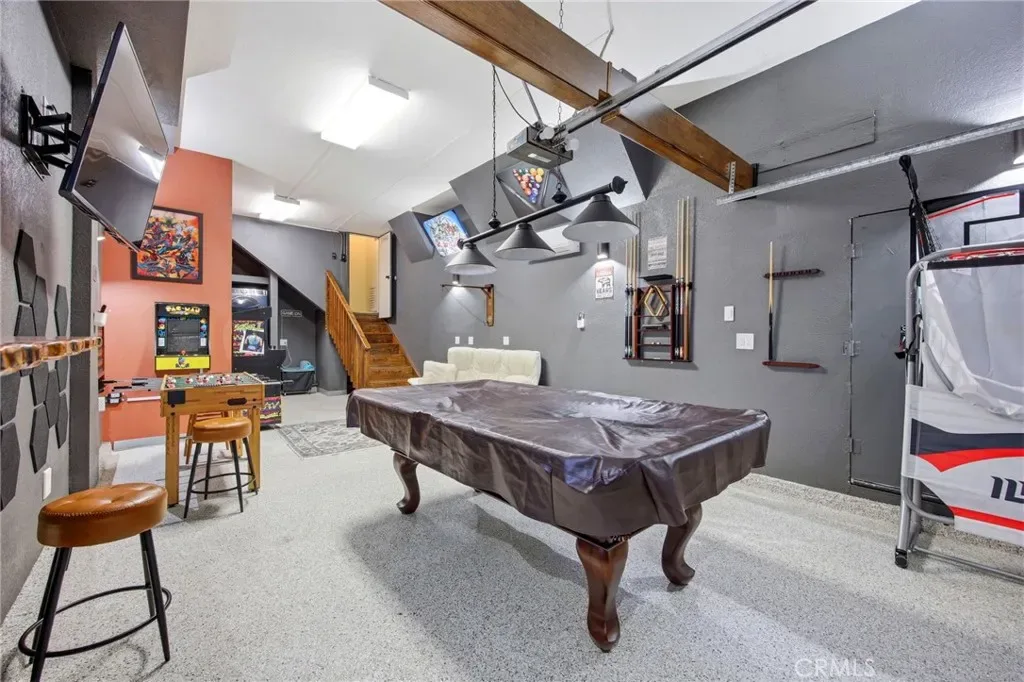 – Entertainment: A ground-level game room/arcade equipped with a pool table, foosball, and Pacman.