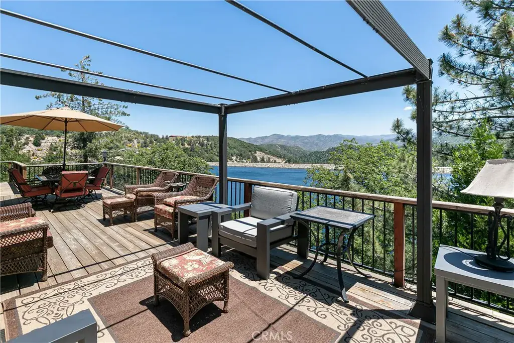 This stunning property, located across from the Lake Arrowhead marina on Papoose Lake, offers unobstructed views of sparkling water and the National Forest. The 17,980 sqft wooded lot provides a serene setting, free from boat recreation in your backyard, making it a peaceful alternative to Lake Arrowhead. Papoose Lake, created with water from Lake Arrowhead, spans 31 acres of tranquil surface area.