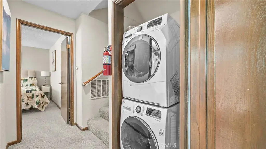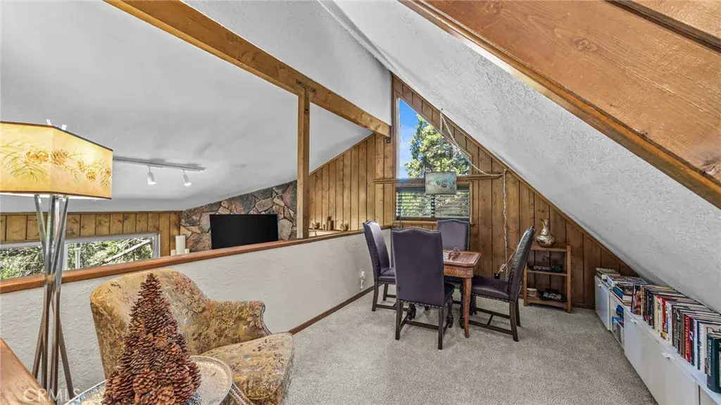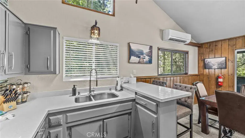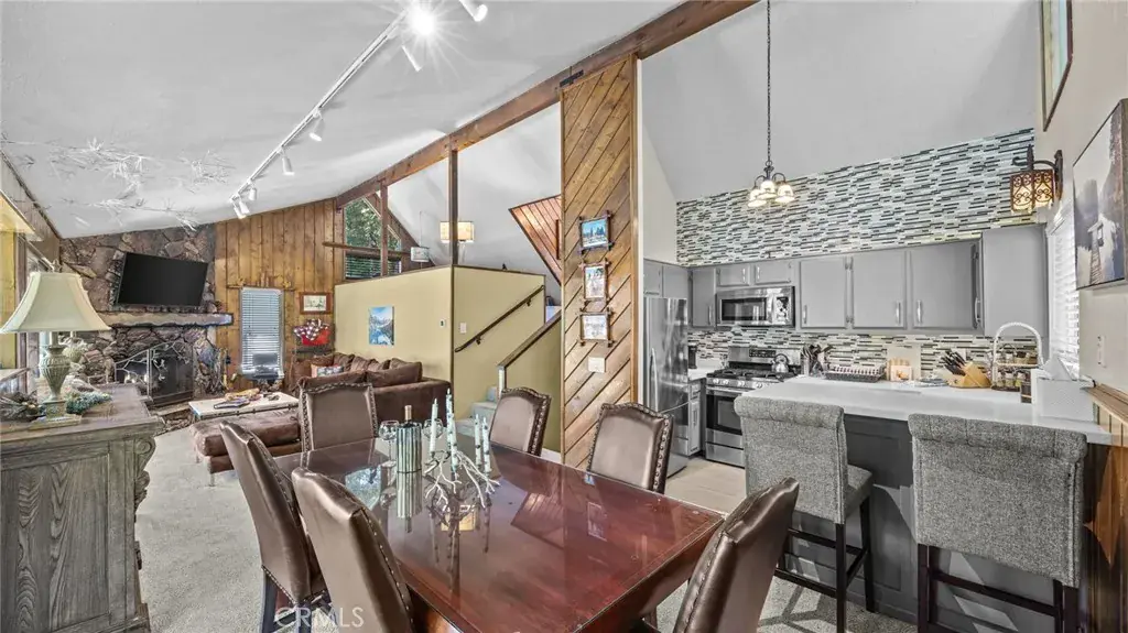 MOTIVATED SELLER! Welcome to your dream cabin in the desirable Arrowhead Villas! This charming 3-bedroom, 2-bath home is nestled on a downslope side of the mountain, surrounded by acres of protected natural forest. Enjoy easy entry-level access and level parking for 3 cars on a newly updated parking deck. Step inside to find vaulted ceilings and a large stone fireplace in the living room, perfect for cozy nights. The recently updated kitchen boasts stainless steel appliances and an eat-at bar area. Two sliding glass doors lead outside to a deck that runs the full length of the house, perfect for enjoying the beautiful forest views. A secret loft/game room provides a fun hideaway for kids. The home also features a convenient laundry area with a washer and dryer, and dual-zoned heating and air conditioning for year-round comfort. Enjoy stunning forest views and abundant wildlife from your backyard, complete with a seasonal stream. The west-facing position ensures spectacular sunsets. The roof has been recently inspected for your peace of mind. Blueprints are available at no cost for adding a 4th bedroom with a bath and additional decking, offering plenty of room to expand. Sold with all furniture and appliances, this cabin is move-in ready. With county-plowed roads in the winter, you’ll have easy access year-round. Located close to Lake Arrowhead Village and Santa’s Skypark Village, and with quick access to Rim Highway 18. Don’t miss this opportunity – schedule a showing today!