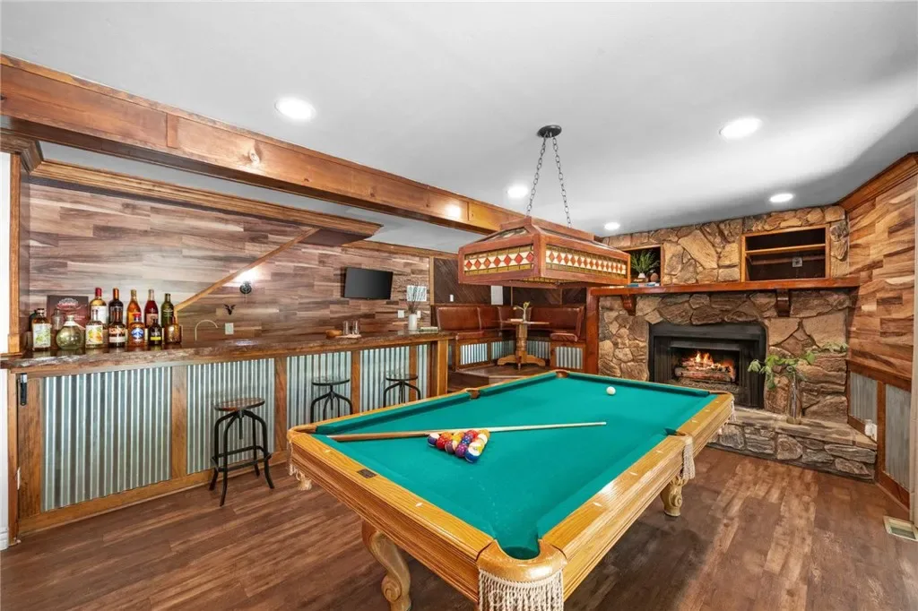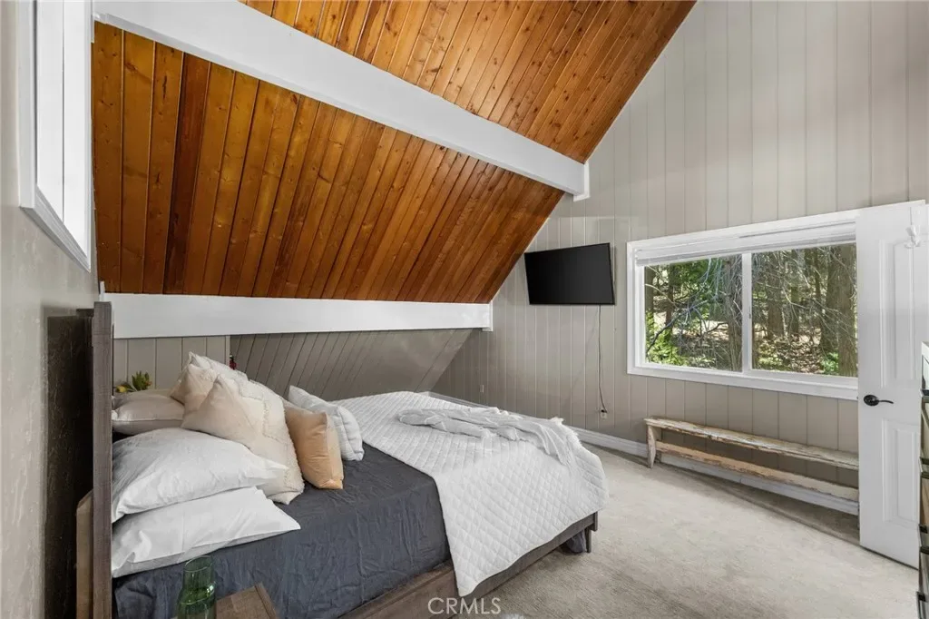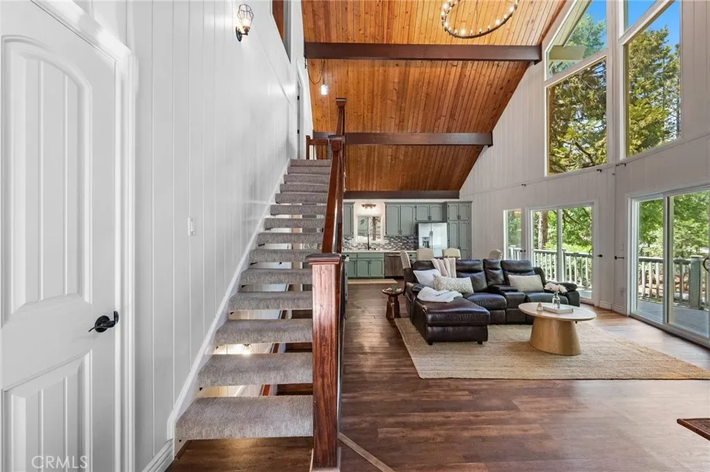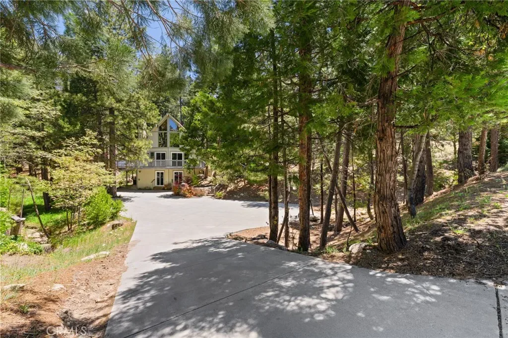 Welcome to your dream getaway in beautiful Lake Arrowhead. Situated on nearly 1/3 acre of lush, private land, this beautifully renovated prow-style home offers the perfect blend of modern comfort and classic mountain character—plus lake rights! Tucked into a serene setting with lush landscaping and a seasonal stream, the home features a spacious wrap-around deck ideal for entertaining or soaking in the peaceful surroundings. Inside, the open-concept living and kitchen area is filled with natural light, highlighted by soaring beam ceilings and a stunning stone fireplace that creates a warm and inviting atmosphere. The expansive primary suite is set on its own private upper level for added comfort. On the lower level, a custom-designed bonus space complete with a built-in wet bar, cozy nook seating, pool table and a second stone fireplace that adds a rustic touch to the entertainment area. A generous laundry room is already plumbed and sized for a potential third bathroom, and there’s abundant storage throughout the home. With a massive concrete driveway offering parking for 6 to 8 vehicles—plenty of room for guests, or even a boat—and easy year-round access to main roads, this home is as practical as it is picturesque. Whether you’re looking for a full-time residence, vacation escape, or investment opportunity, this Lake Arrowhead property delivers comfort, charm, and room to relax.