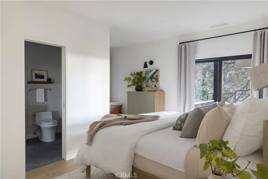 Escape the noise of the city and retreat to a privately gated 5.43 acre property in the Cedar Ridge Estates community. This home offers rare privacy, usable land, and incredible lake and ridge line views, yet it’s just minutes from the lake and only 90 minutes from Los Angeles. A full renovation reimagined the home with natural materials and a modern mountain feel. The main level was redesigned for open concept living, featuring a beautiful new kitchen with top of the line appliances and a large island that anchors the space. The kitchen flows into the dining and living areas, both opening to newly built decks that overlook the views. Warm wood tones and expansive windows make the home feel bright and connected to the outdoors on every level. One of the standout features of the property is the dedicated wellness floor. A large cedar sauna, cold plunge, steam shower, and cedar hot tub create a true at home spa experience. Multiple fire features, private hiking trails, and wide view decks make it easy to enjoy the outdoors in every season. The home offers five bedrooms, four of which are en-suites, along with five updated bathrooms and thoughtful upgrades throughout, including a full Control4 system, a heated driveway, and the Frontline Sprinkler Foam Retardant System. Lake Rights are included, providing full access to everything Lake Arrowhead has to offer. If you’re looking for privacy, views, a spa-like retreat, and a home designed for easy mountain living with a strong wellness focus, this one truly stands out.