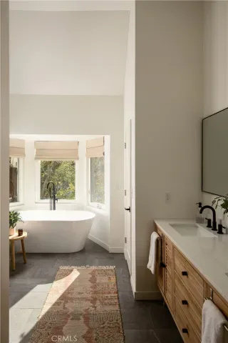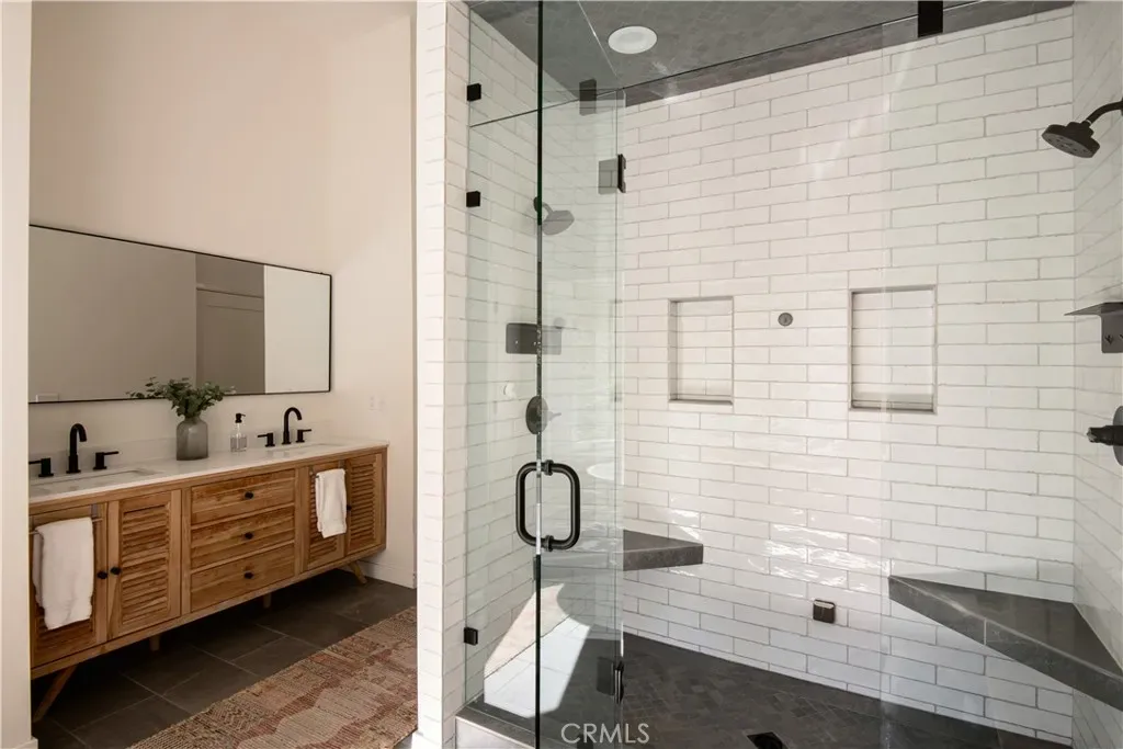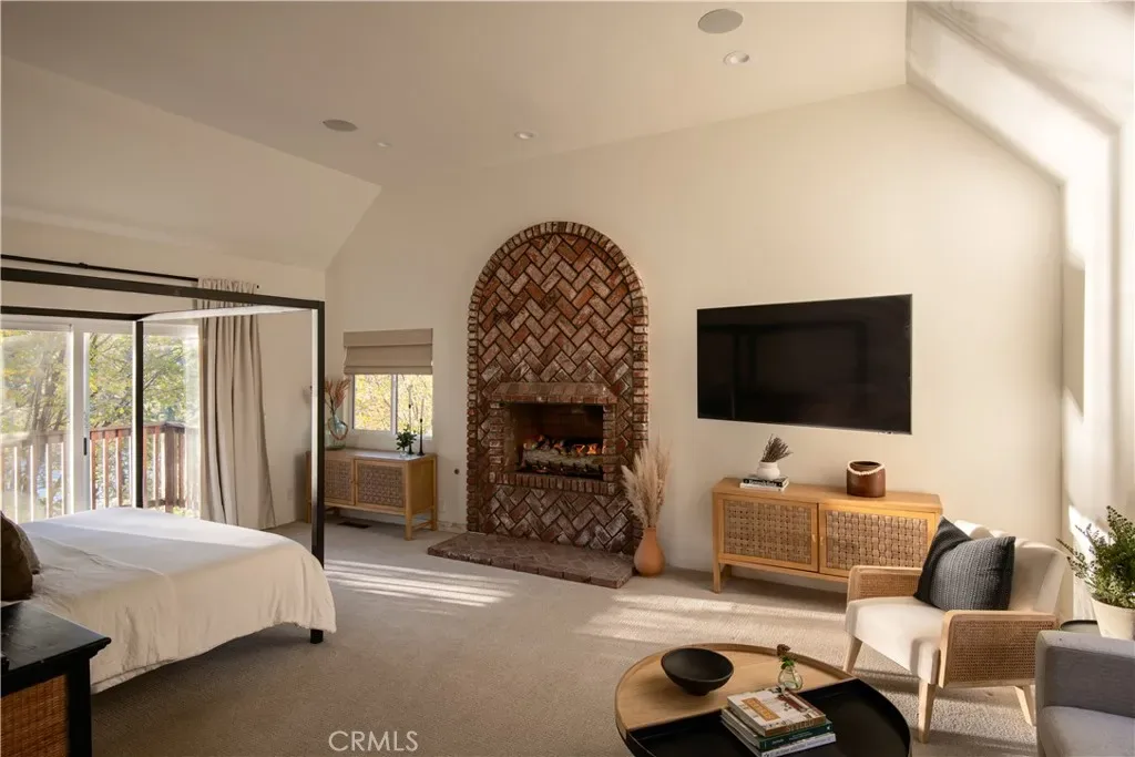 The primary suite offers a private deck, steam shower, and fireplace retreat. Dual laundry rooms, a