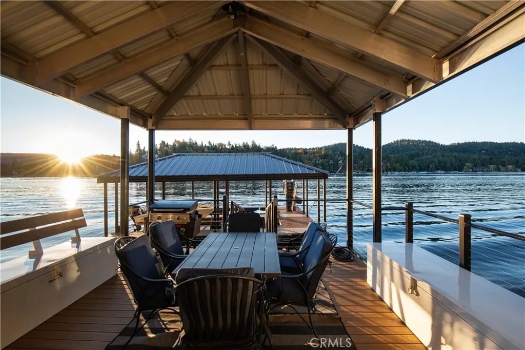 At the shoreline, a luxury dock awaits—steel infrastructure, aluminum roof, composite decking, a