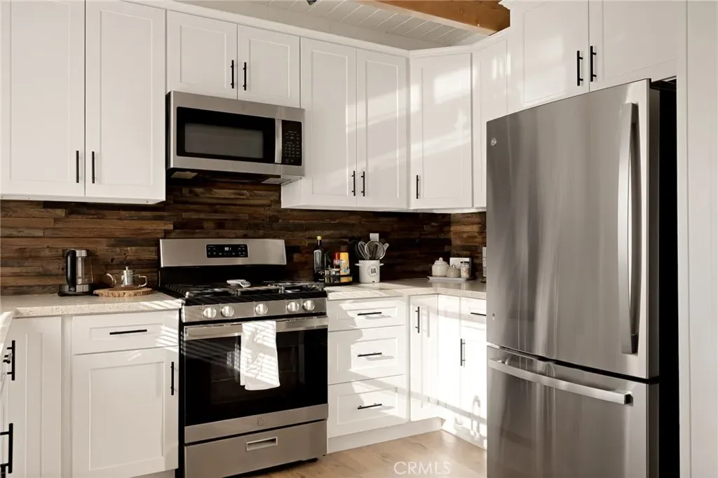 This 4-bedroom, 3-bath home sits on a spacious 10,800 sq ft corner lot and has been thoughtfully upgraded to combine modern finishes with classic mountain charm. Inside offers vaulted ceilings and abundant natural light create an open, inviting feel, while the main living area features a cozy fireplace and seamless flow into the kitchen and dining space ideal for both everyday living and entertaining. This home is being offered fully furnished and equipped, making it move-in ready for a full-time residence or second home. Central A/C throughout which is rare for the area adds year-round comfort.