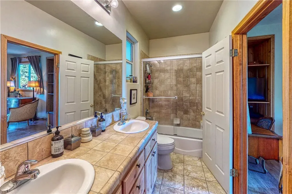 The primary suite provides a comfortable retreat with built-in cabinetry, a walk-in closet, and convenient