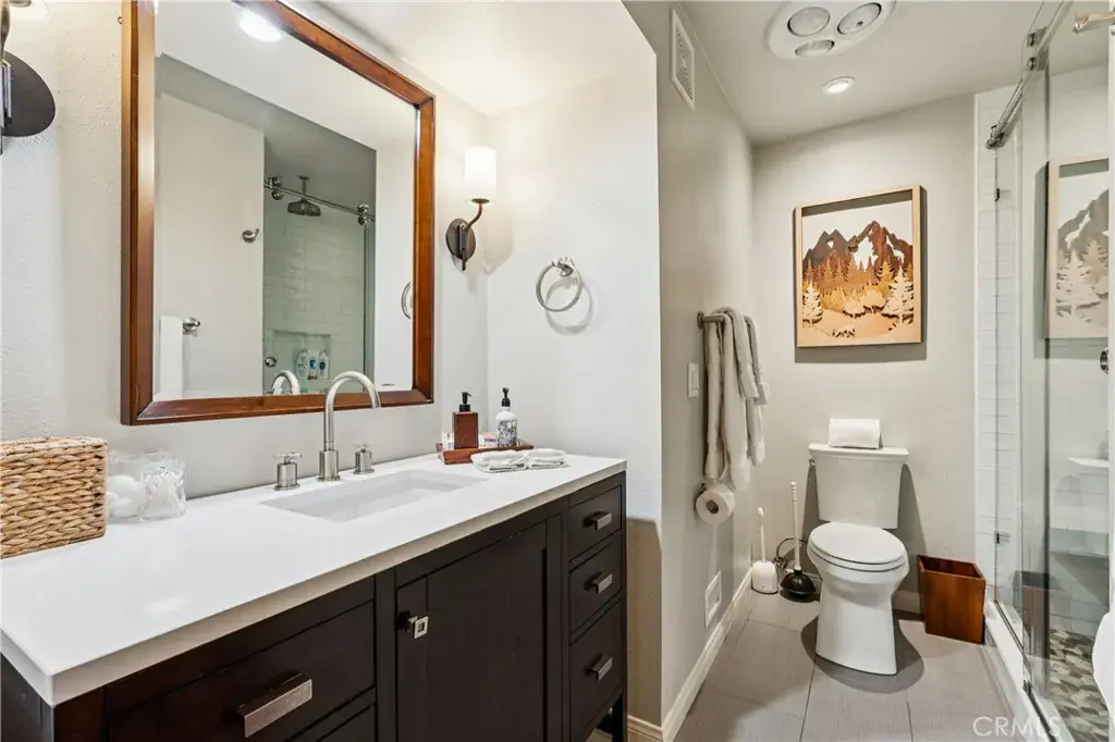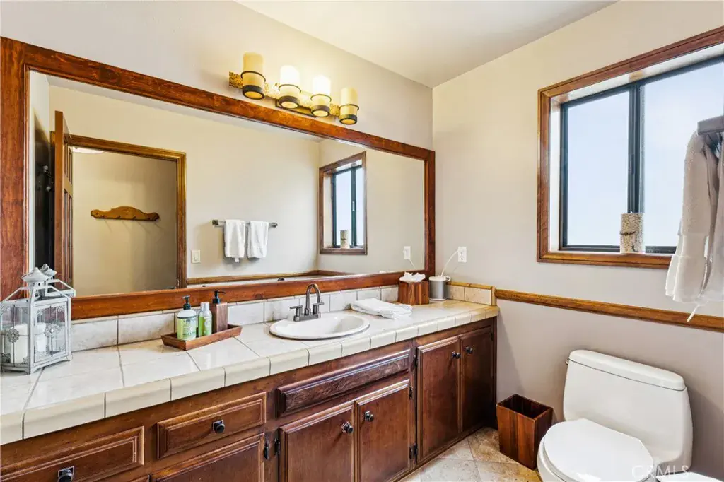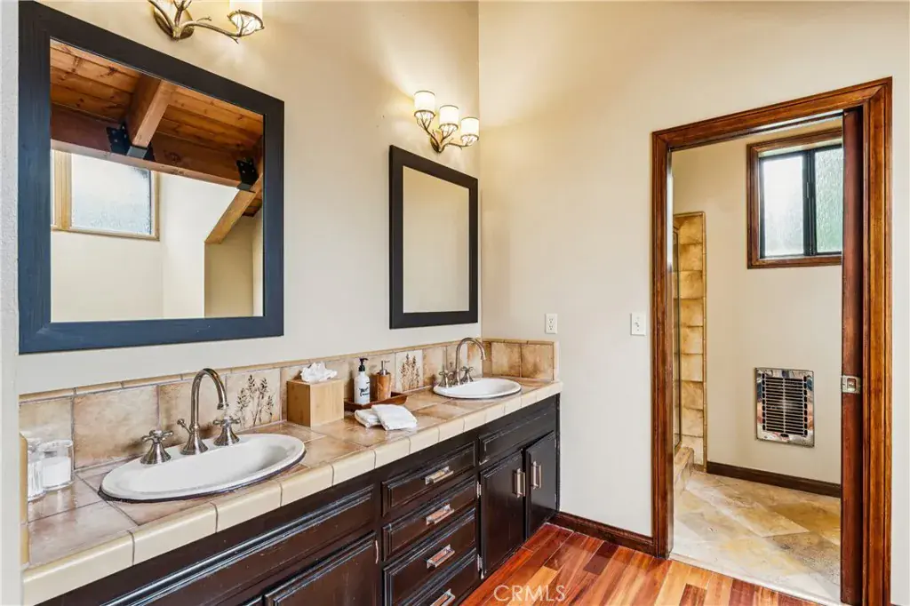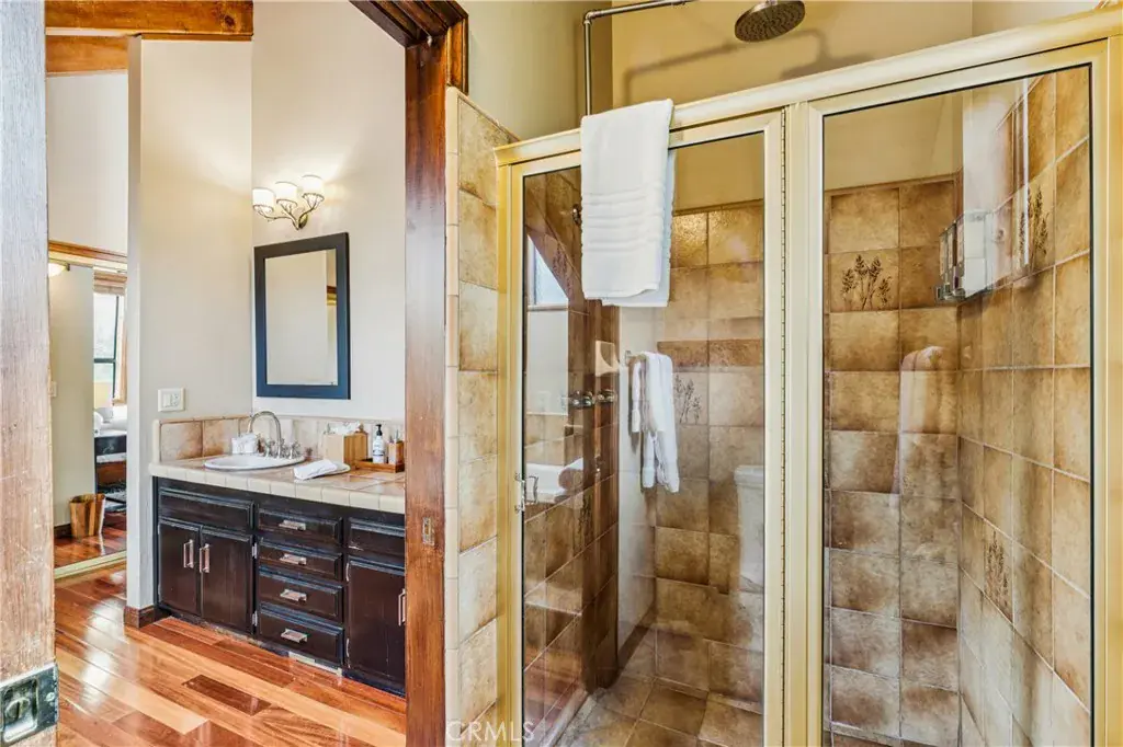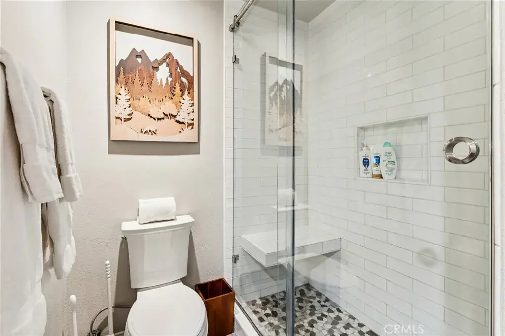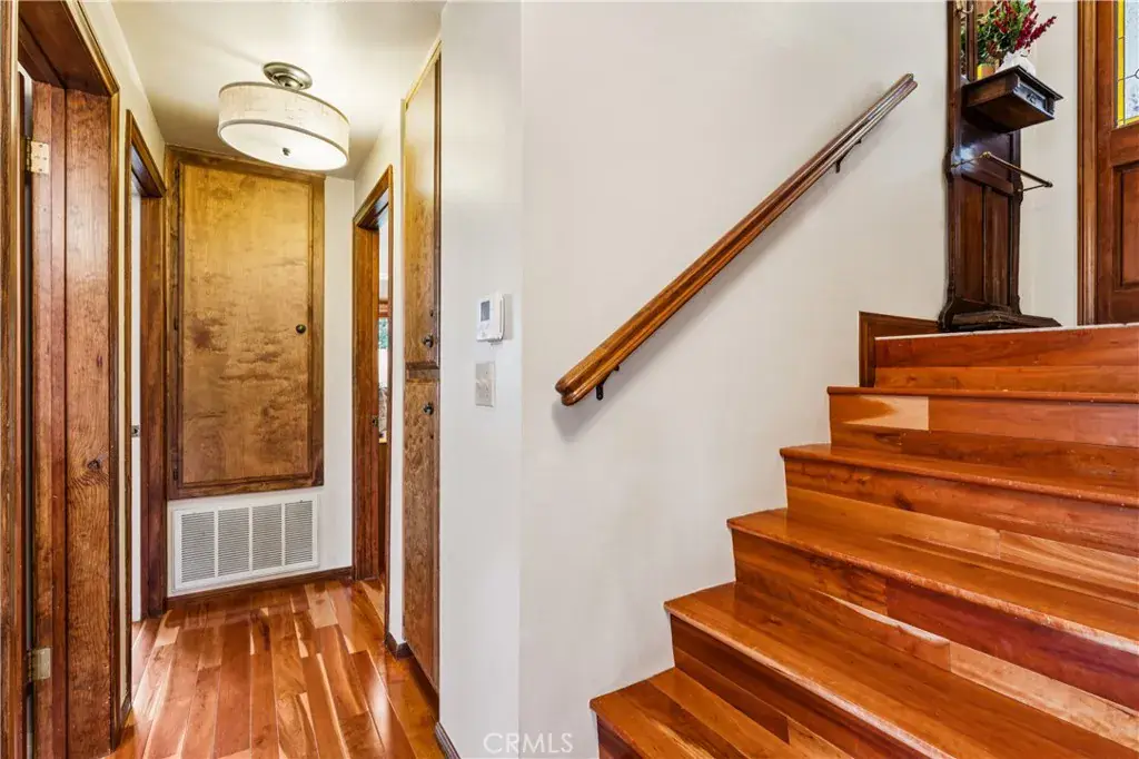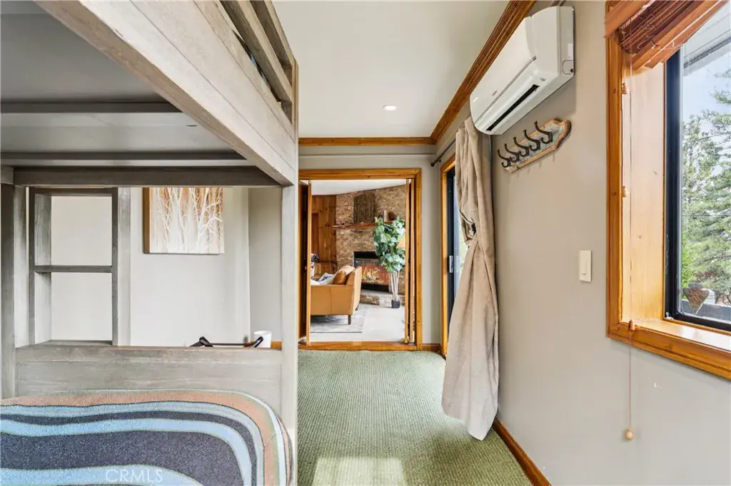 Need a little drama in your life – the good kind? Step into this stunning Lake Arrowhead retreat, where grand architecture meets mountain elegance. The living room is a showstopper, with soaring ceilings, a dramatic river rock fireplace, and floor-to-ceiling bookshelves that will delight any book lover. Arched windows frame views of evergreens and a peaceful outdoor water feature, setting the tone for this truly special home. Morning light filters through the trees as you wake to tranquil lake views from your bedroom, and evenings end by the fire or under starry skies on the deck. Just moments from private lake access and a quick drive to the Village, this home offers the perfect balance of seclusion and convenience. The open-concept main level was built for gathering, featuring a spacious kitchen with rich hardwood floors, generous cabinetry, a large pantry, stainless steel appliances and a large peninsula where everyone naturally comes together. The connected dining area opens to the deck—ideal for coffee, cocktails, or quiet conversation. Upstairs, the primary suite feels like a destination of its own: vaulted ceilings, a cozy fireplace, a spa-style bath, and your own balcony facing the lake. The lower level adds even more flexibility, with a bright family room, two additional bedrooms, a full bath, and a cheerful bunk room for guests. Outdoors, manicured landscaping, stone walkways, and a built-in gas BBQ make entertaining effortless. The oversized two-car garage includes an EV charger and laundry area, while the whole-house generator and multiple mini-split units keep things comfortable year-round. Offered fully furnished and beautifully maintained, this Lake Arrowhead home is one of a kind.