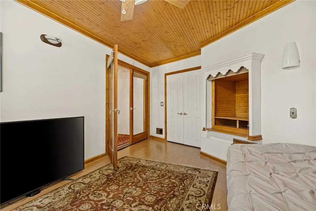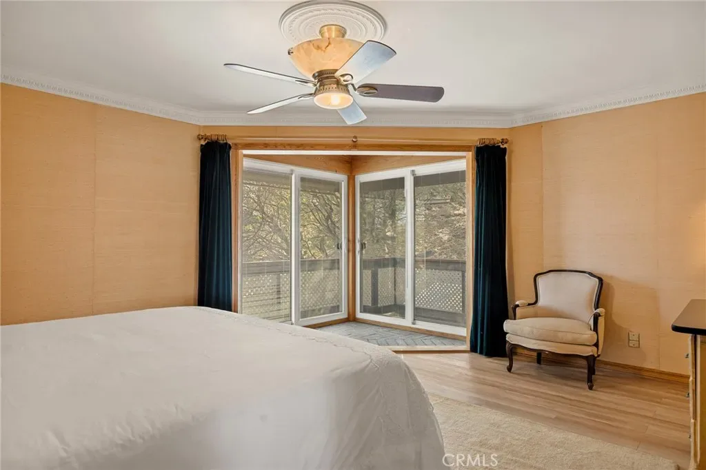 An exceptional mountain home offering sought-after lake rights to beautiful Lake Arrowhead, this spacious residence delivers a rare and valuable lifestyle opportunity. Set on a generous parcel with charming curb appeal, the home welcomes you with a well-maintained exterior and level-entry parking into a 2-car attached garage with direct access into the home—a highly desirable feature for mountain living. Additional parking across the street provides ample space for a boat, RV, or outdoor toys. Inside, expansive living spaces flow seamlessly into comfortable bedrooms and flexible living areas, including a mother-in-law quarter complete with a built-in stove, fridge, and microwave, ideal for guests, extended family, or potential rental income. The main living area features high ceilings and an open layout, complemented by a fully enclosed sunroom that offers versatile year-round enjoyment. Outdoors, a large patio invites al fresco dining and gatherings while you take in the peaceful setting and peek-a-boo lake views. Additional highlights include a finished exterior shed with potential for a future bathroom, and a spacious, landscaped yard offering room for play, gardening, or future enhancements. Located just minutes from local trails, lake access points, and all the charm of Lake Arrowhead mountain living, this home is perfectly suited as a full-time residence, vacation retreat, or investment opportunity.