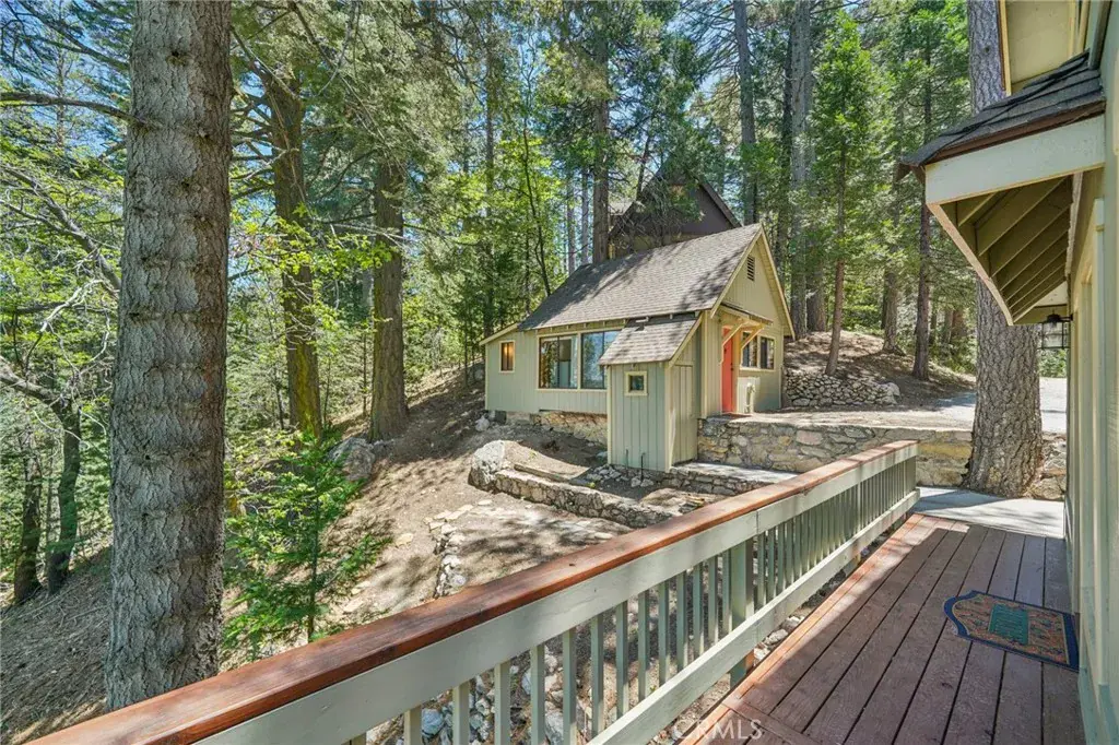 Offered for the first time in years, this timeless 1928 mountain lodge is nestled in the coveted enclave of Crest Estates—a private, storybook neighborhood where listings rarely surface. Tucked among towering pines, this home blends rich historic character with refined modern upgrades. The moment you enter, you’re greeted by soaring two-story trestle-beamed ceilings and a floor-to-ceiling rough-hewn granite fireplace that anchors the sun-drenched great room. Nearly every room—save the bathrooms—boasts sweeping panoramic views of Lake Arrowhead, stretching almost to the marina. The main level features a chef’s kitchen with brand-new, never-used appliances (still in protective wrap), custom cabinetry, and a statement powder room. A charming mid-stair window seat offers a moment of retreat with breathtaking views of both lake and forest. Upstairs, the primary suite reigns supreme with its own private balcony and open loft-style landing, creating a secluded sanctuary above it all. Downstairs, find a secondary bedroom and utility room with direct access to updated systems including FAU and a tankless water heater—plus space to add a bathroom. To keep things low maintenance, a new septic system and electrical panel round out the system updates. Outside, a fully renovated detached guest house provides studio-style luxury with its own lake views. While this property does not currently hold lake rights, consider pursuing them via an Arrowhead Woods lot purchase. In the meantime, you’ll enjoy a setting so private, serene, and visually commanding it barely seems real. This is not just a home—it’s a legacy opportunity. Properties like this whisper through the market. By the time you hear them, they’re already gone.