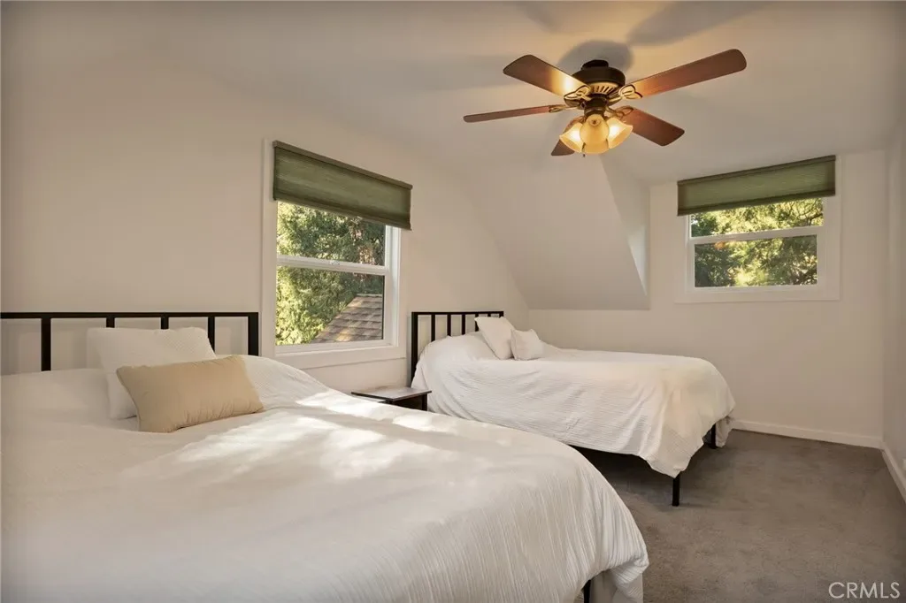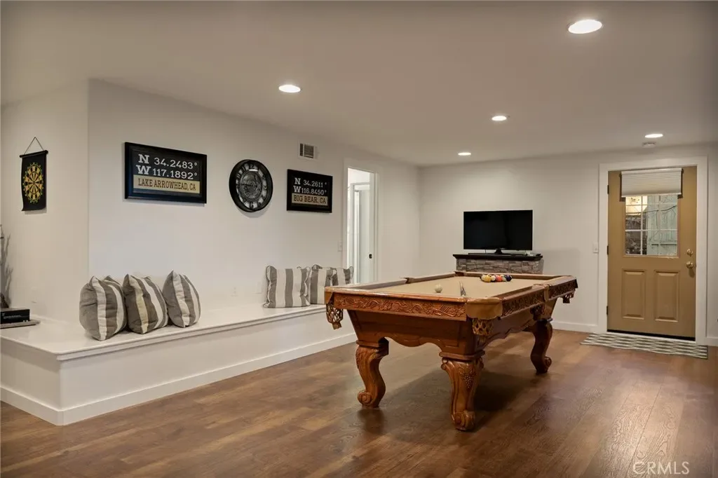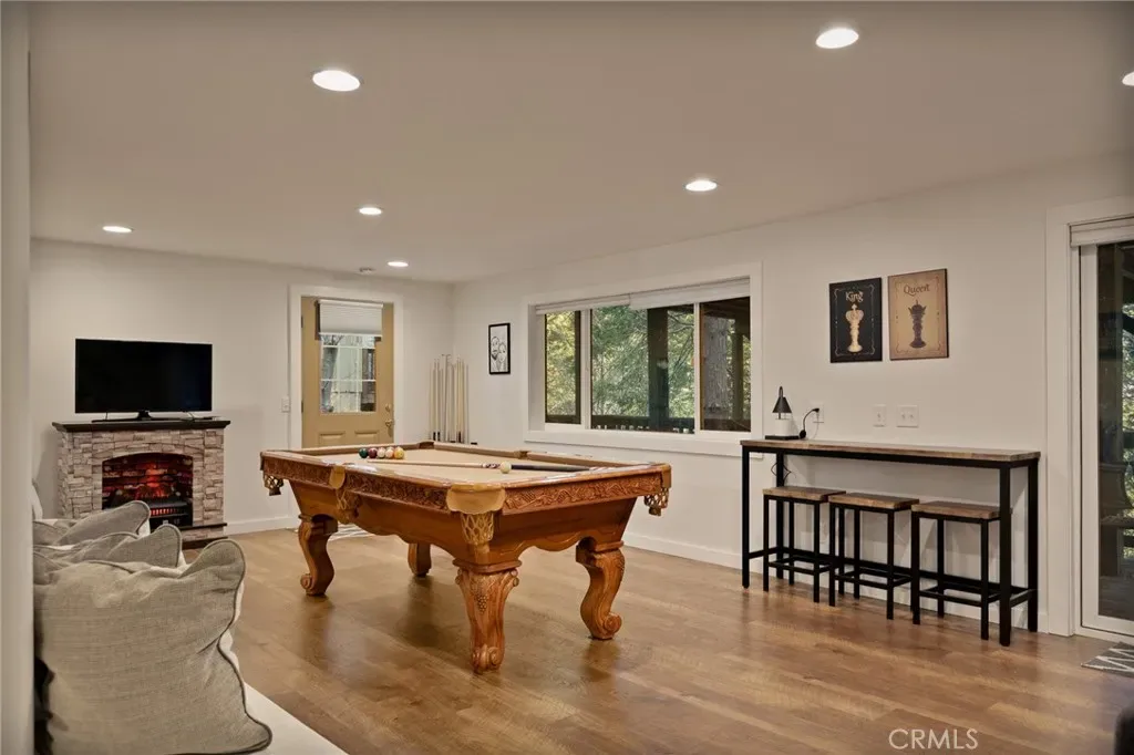 Ready to enjoy the mountains? This is a turn key remodeled cabin in the woods ready for you …Level entry and furnished per inventory. Tucked within the coveted, storybook enclave of Crest Estates, this enchanting cabin invites you to slow down, breathe deeper, and fall in love with mountain living. 3 bedrooms/3 baths + a family room. New windows! Surrounded by whispering pines and blooming dogwoods, this private retreat feels like a world of its own—yet it’s less than a mile from the charm and energy of Lake Arrowhead Village and lake.. Original hardwood floors carry the warmth of decades past, while a stunning stone wood-burning fireplace becomes the heart of the home—perfect for curling up on snowy evenings or sharing quiet moments by the fire. The main level offers a serene primary suite with its own bath, a charming galley kitchen, and a convenient laundry space, all designed for effortless living. Step out onto the expansive deck and let the forest wrap around you. Sip morning coffee as sunlight filters through the trees, or toast to golden sunsets with soft peekaboo lake views—it’s the kind of setting that turns everyday moments into memories. Downstairs, a spacious playroom with its own bath opens to a second oversized deck, creating the perfect space for laughter-filled gatherings, weekend guests, or cozy nights of friendly competition. Set on nearly half an acre with parking for 3–4 vehicles and a low association fee, this home offers both ease and escape.This isn’t just a cabin—it’s a place to reconnect, to unwind, and to write your next chapter surrounded by nature, beauty, and a little bit of magic.