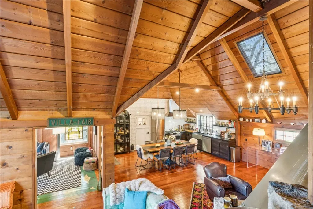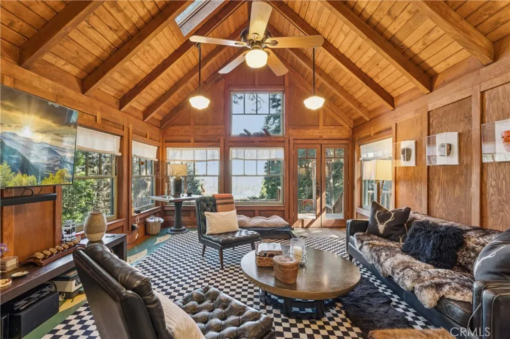 One of the finest, most meticulous and by far the most Charming Quintessential Period Appropriate 1932 Crest Estates Vintage Residences in all of Lake Arrowhead with echoes of Hollywood Movie History inclusive of the 1932 Film “Vanity Fair” featuring Myrna Loy & Barbara Kent. This impeccable residence offers 2,915 sqft of Remodeled Baths, Upgraded Chef’s Kitchen, Vaulted Wood Beamed Ceilings, Focal Point Split Granite Fireplace boasting Copper Hood, Skylights, Hand Picked Cobblestone Entry Flooring, Period consistent Antique Hardware and Lighting, Stenciled Flooring Bonus Family Room, Mud Room, Expansive Entertaining Deck Area capturing Lake Arrowhead Lake Views, Towering Firs and Blooming White Dogwoods encompassing this Super Private 29,250 sqft Lot backing up to Crest Estates Greenbelt Land. Other Features include: Primary Bedroom En-suite with Day Spa ambiance complete with Soaking Tub, large Walk-in Shower and Custom Sink. 3 Separate Guest Bedrooms, Walk-in Kitchen Pantry, Clear Fir Flooring, Large Laundry Room, Upgrades Appliances, Fenced portion of the Yard for Pet, One Car Garage and Level Parking for 6 Cars. This is an Extraordinary Treasure of a Residence located just minutes to Lake Arrowhead Village!