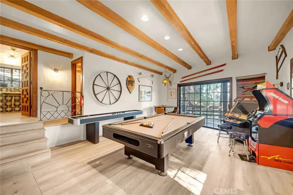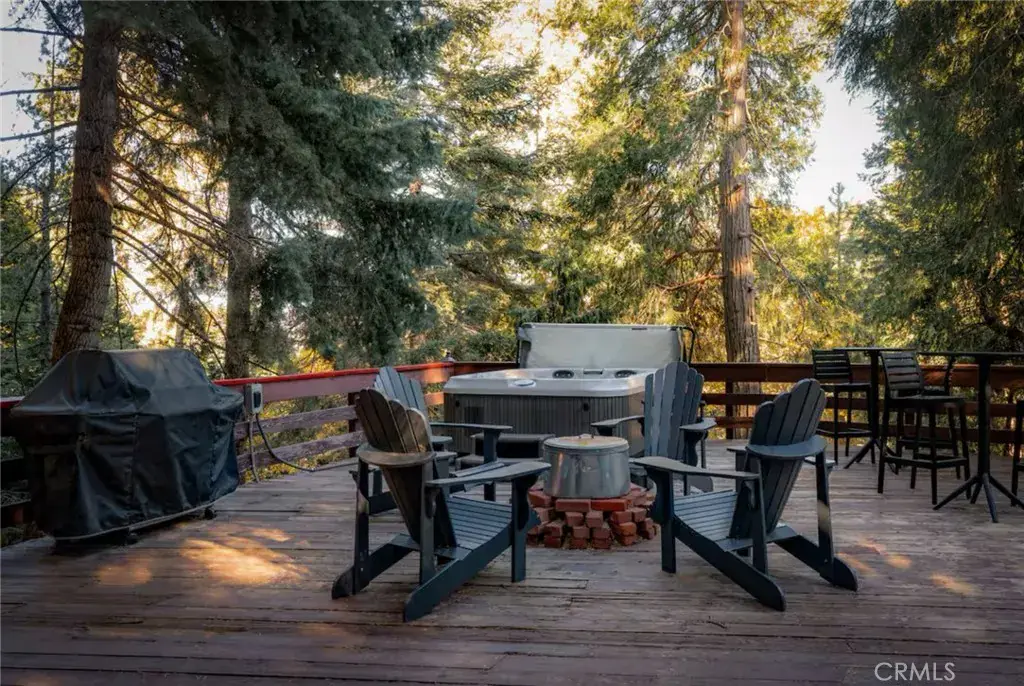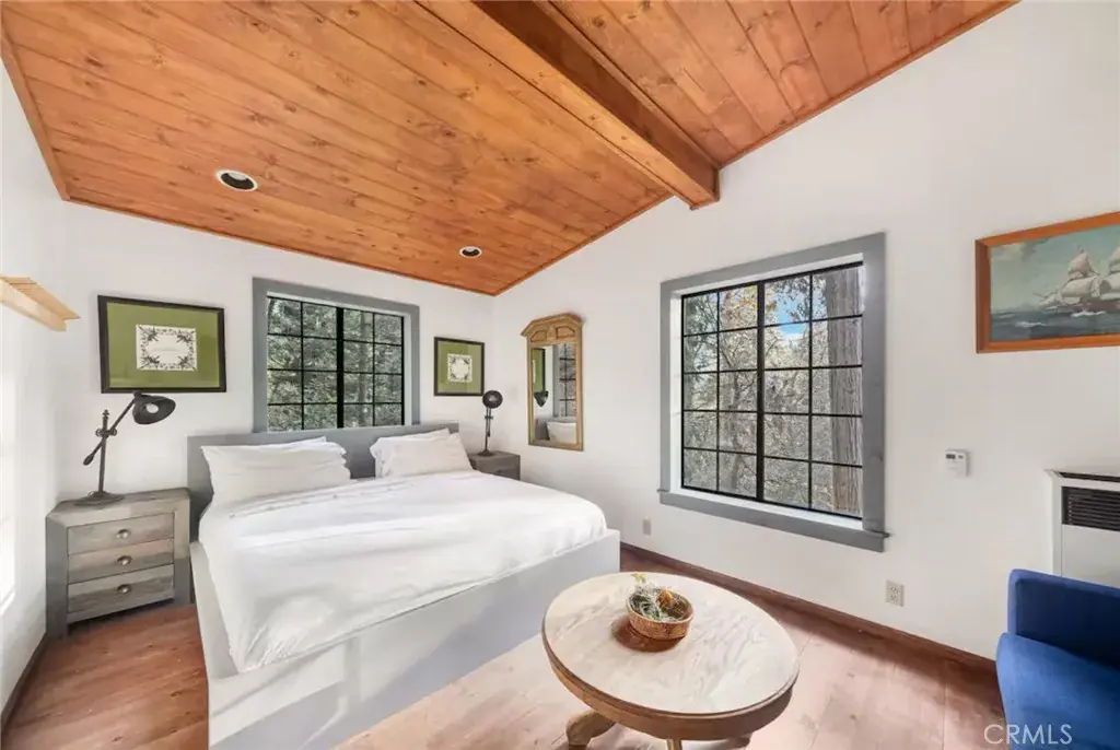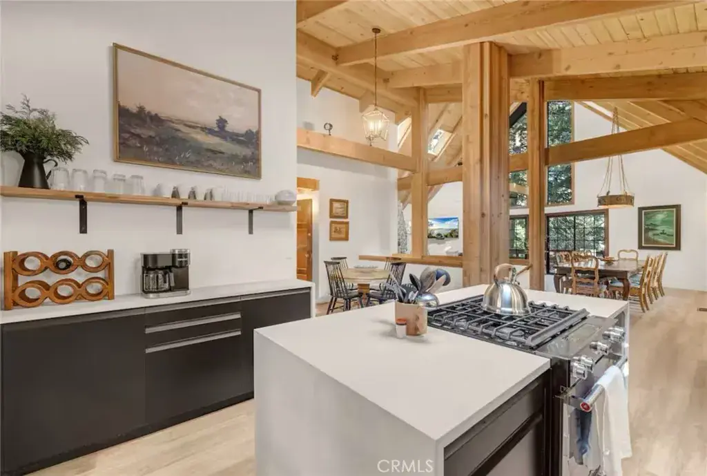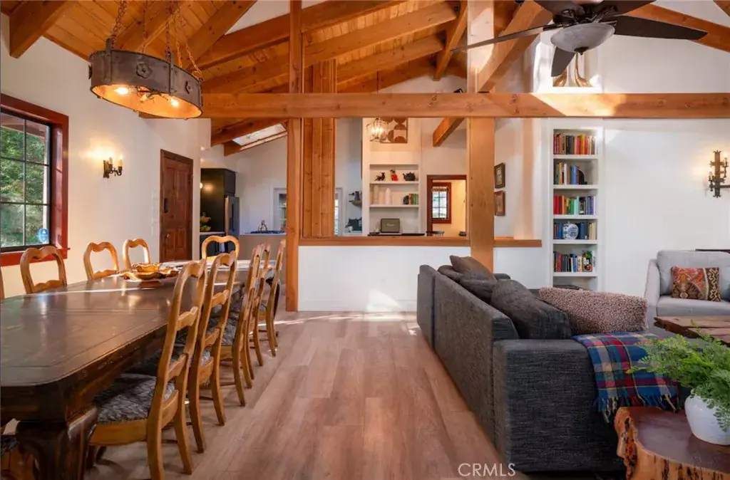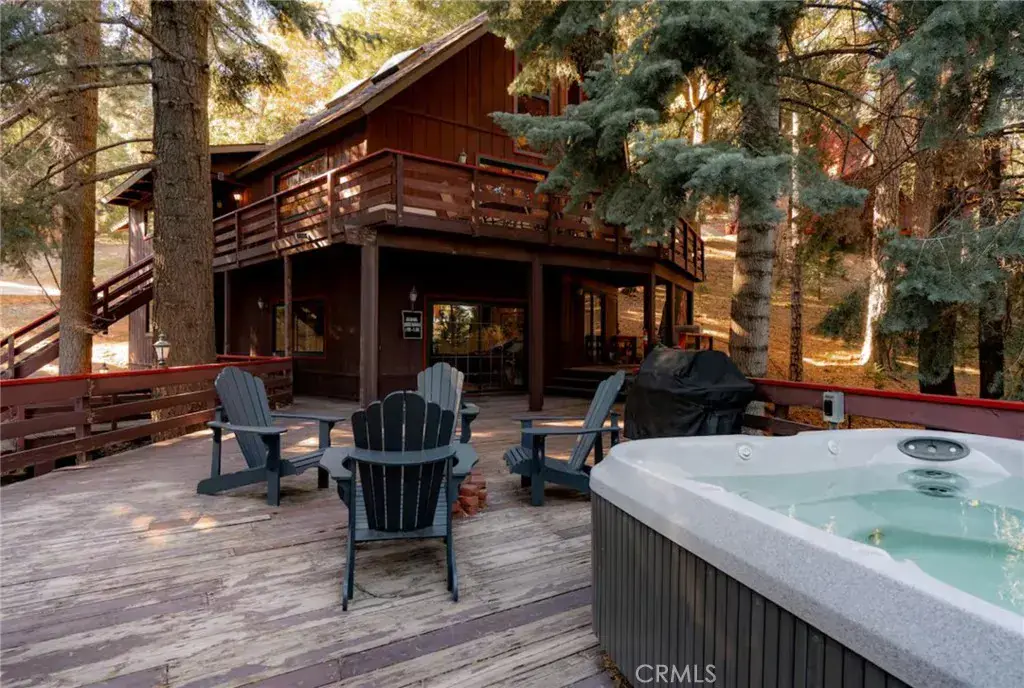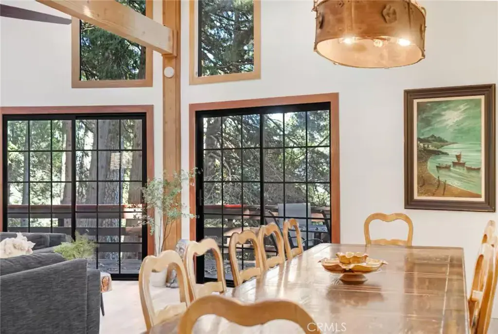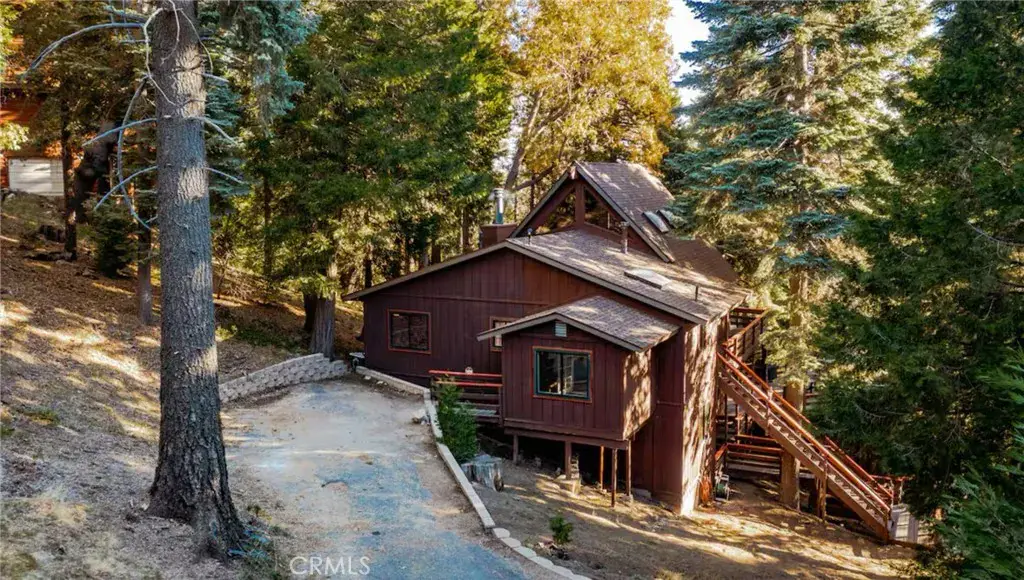 Off-The-Beaten-Path find this Completely Remodeled 2-Story Dramatic Beauty in Coveted Skyforest offering Supreme Privacy located just minutes from SkyPark and Lake Arrowhead Village! This Residence boasts 2,447 Sqft of Detailed Quality Upgrades inclusive of Tile, Stone, Hardwood Flooring, Dual Entry Access Areas, Expansive Outdoor Deck Entertaining Areas, Detached One Bedroom Guest House/ADU Unit complete with Kitchen, Bath with Stack Washer and Dryer, Detached 2-Car Garage with Firewood and Storage Area below, all set on a Private Wooded 42,420 Sqft Lot. Upper Level Main Level Features: Vaulted Wood Beamed Cathedral Ceiling Skylight lit Living Room with Wood Burning Rock Fireplace combo Open Dining Area that seats 12, Opens to Rock Wall Kitchen with Center Isle with Kitchen-Aid Appliances, Tiled Formal Entry that doubles as Storage and Pantry Area, Primary Bedroom and Bath with walk-in Tiled Shower. Lower-Level Features: 2 Guest Bedrooms one of which is Ensuite, Large Family/Game Room, Utility Closet with Side-by-Side Washer and Dryer. Both Levels of the home have access to Private Decking Areas. The photos speak volumes come make it yours!