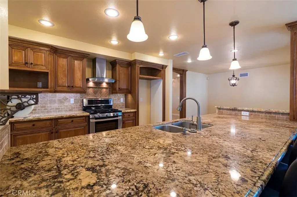 Step inside to find a haven of sophistication. The custom kitchen is a dream for any culinary enthusiast, featuring granite countertops and a breakfast bar that invites casual conversations. The living room is equally impressive, with a custom fireplace that sets the mood and seamless access to the backyard.