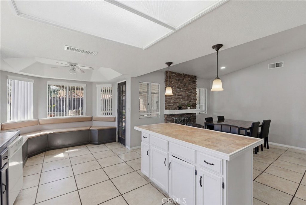 Welcome to this beautifully maintained 4 bedroom, 2 bathroom turnkey home offering 1,924 sq. ft. of move-in-ready living space in the heart of Lake Elsinore. Thoughtfully designed with an open-concept layout, the interior shines with durable tile flooring that flows seamlessly through the main living areas, all centered around a cozy custom fireplace in the family room—perfect for relaxing nights in or entertaining guests. The spacious kitchen is ideal for home chefs, featuring a full appliance package, generous counter space, and ample cabinetry for storage.