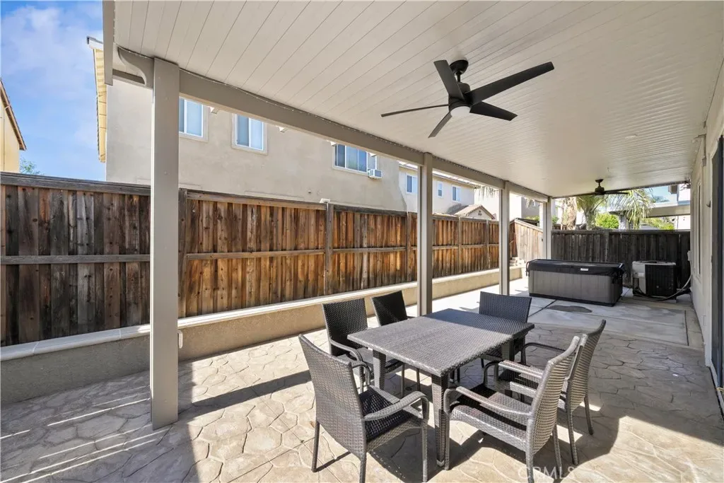 Upstairs features a spacious loft with plenty of windows, providing abundant natural light. The primary suite offers a luxurious retreat featuring a spacious master bedroom, walk-in closet, and a beautifully upgraded walk-in shower. Both upstairs bathrooms feature double vanities, providing convenience and ample space. The exterior is equally impressive, offering a 2-car garage and an estate-style driveway for additional parking. The private fenced backyard includes a well-built 2-foot retaining wall, artificial turf, and concrete hardscaping throughout the front and backyard. Enjoy outdoor living under the aluminum patio cover built in 2020, perfect for relaxing or entertaining. Residents of Viscaya enjoy exceptional community amenities, including a resort-style pool and spa, outdoor BBQ areas, a covered entertaining pavilion with a kitchen, and two playgrounds. Perfectly situated near schools, shopping, dining, and everyday conveniences, this home balances lifestyle, comfort, and location. Ideal for hosting family and friends or enjoying peaceful evenings at home, it also offers easy access for water enthusiasts and boating lovers.