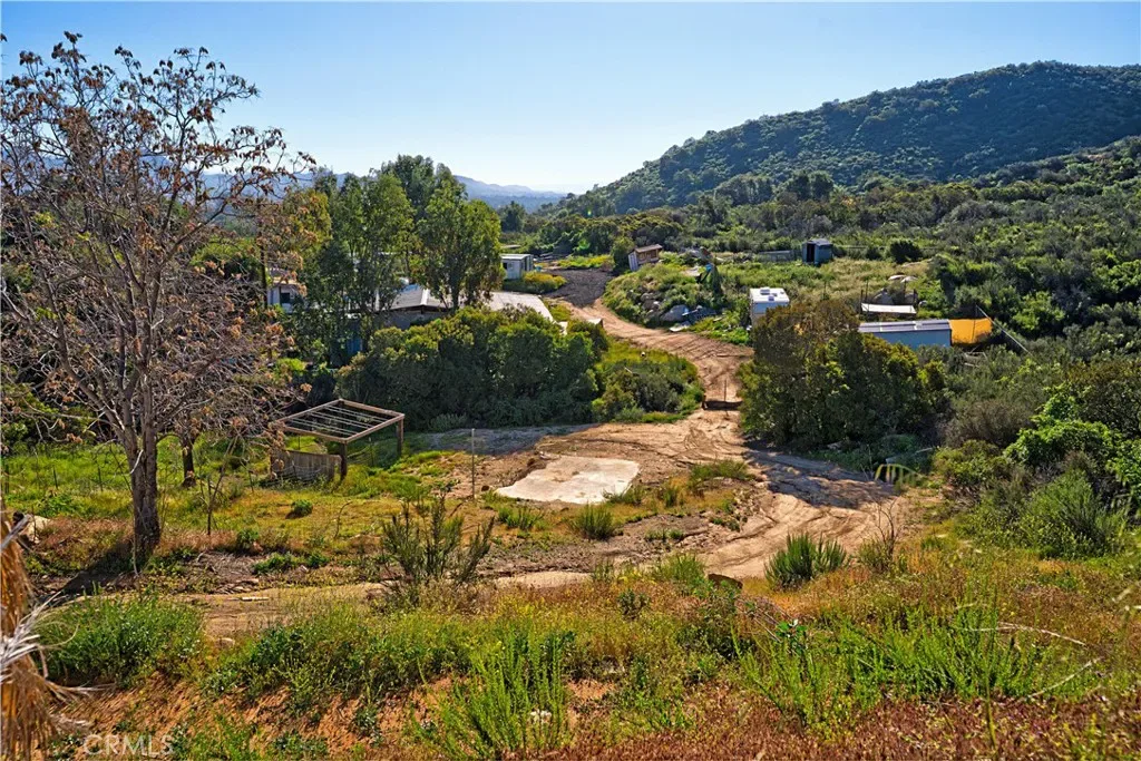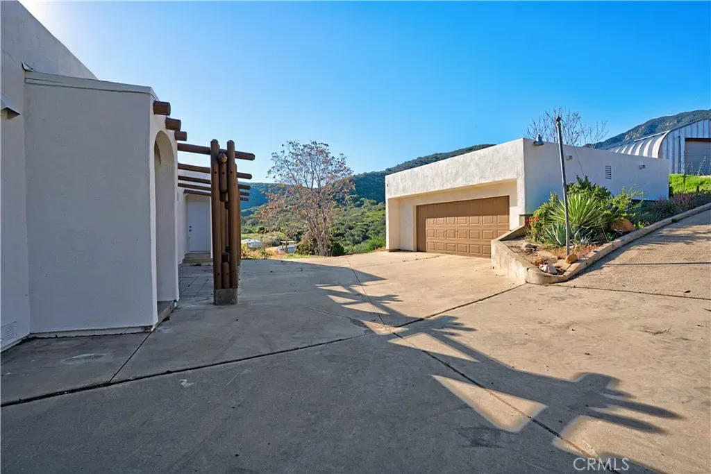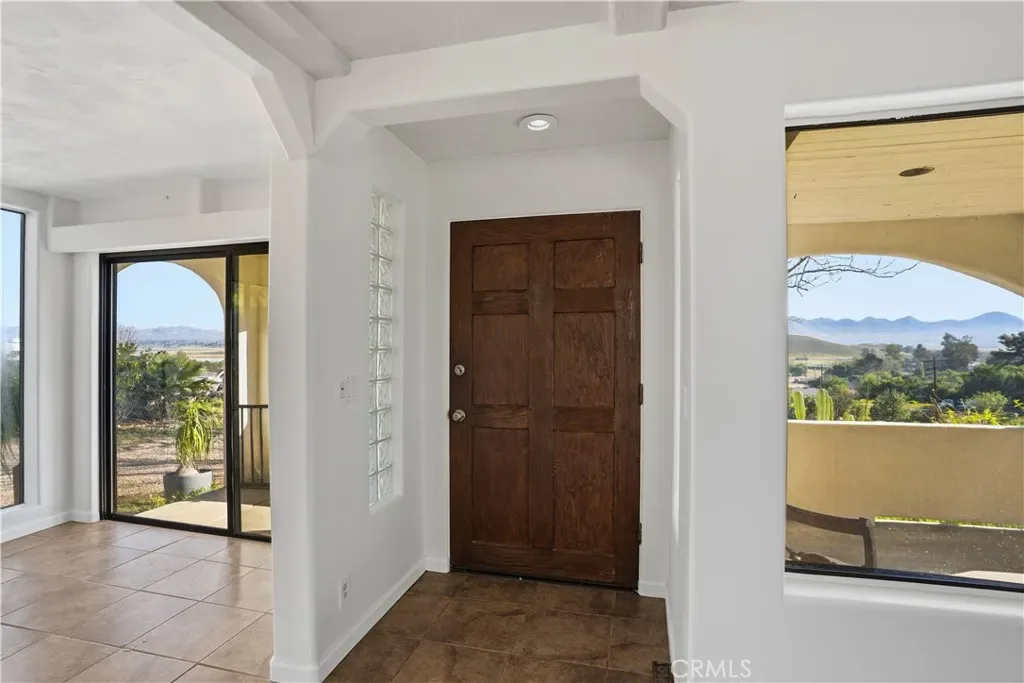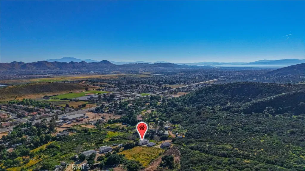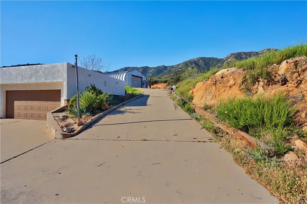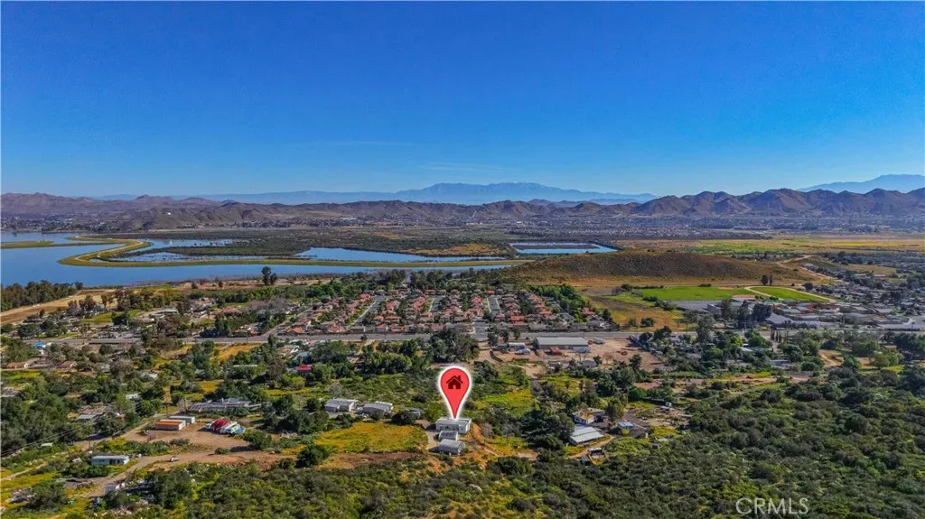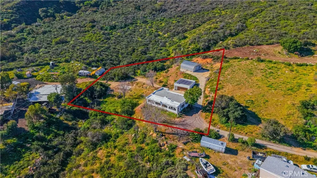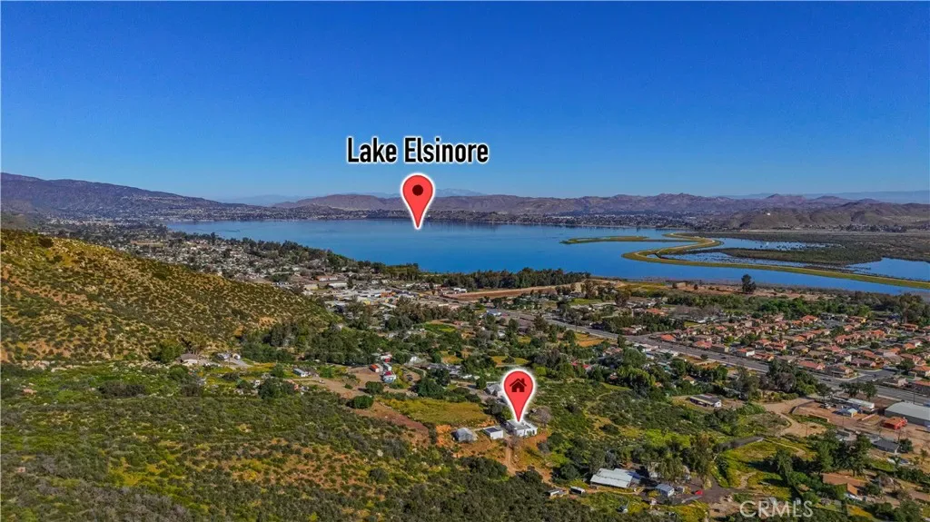 Private hilltop retreat with fantastic views of the Lake Elsinore Valley, lake views, and the Ortega Mountains. This unique home offers privacy while still being close to town. Fresh interior and exterior paint give the home a clean, updated feel. The owner remodeled the home with custom plastered walls and a stucco exterior, giving it the look of a traditional home. Enjoy the views and cool breezes from the large covered front porch with beautiful archways. The home measures approximately 1,325 sq. ft. (buyer to verify) and sits on a permanent foundation. The living room features a cozy fireplace, and tile flooring runs through the kitchen, dining area, family room, hall, and hall bath. Numerous dual-pane windows and a sliding glass door provide natural light. Outside features a huge detached 2-car garage (approx. 600 sq. ft.), a large workshop (approx. 700 sq. ft.) with roll-up door and 220V, plus ample parking and a large concrete driveway—perfect for RVs, boats, toys, or projects