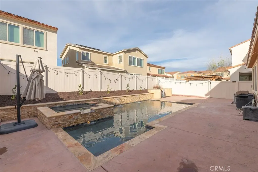 One of the home’s most impressive features is the 18-foot stackable sliding glass patio door that completely opens to the covered California Room, delivering seamless indoor-outdoor living. Step into your private backyard retreat with a sparkling pool and spa—perfect for relaxing evenings or hosting gatherings year-round.