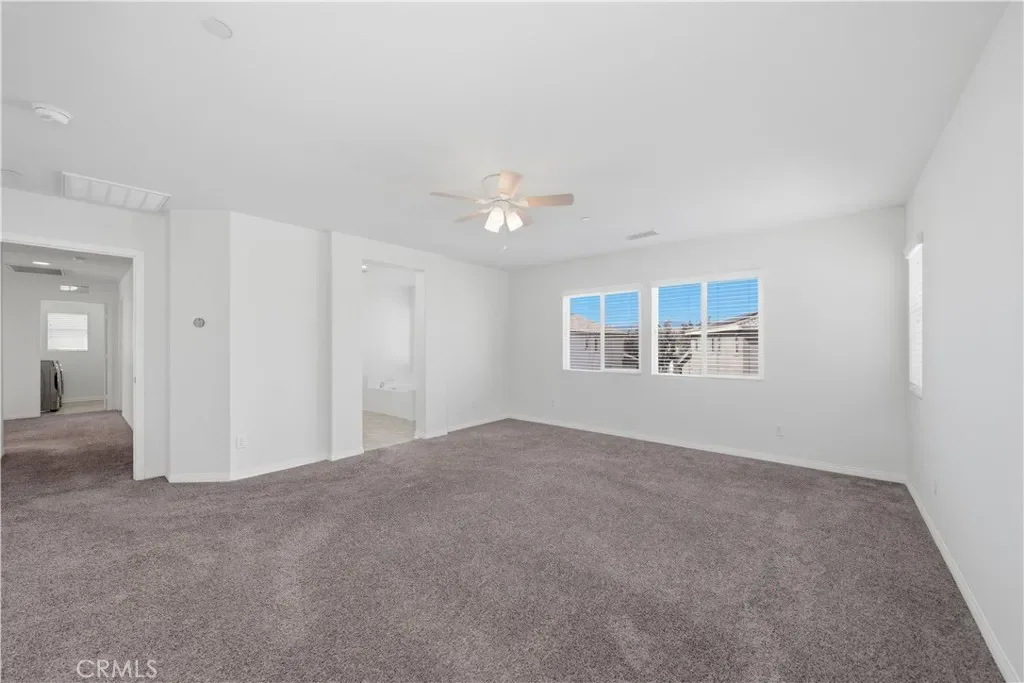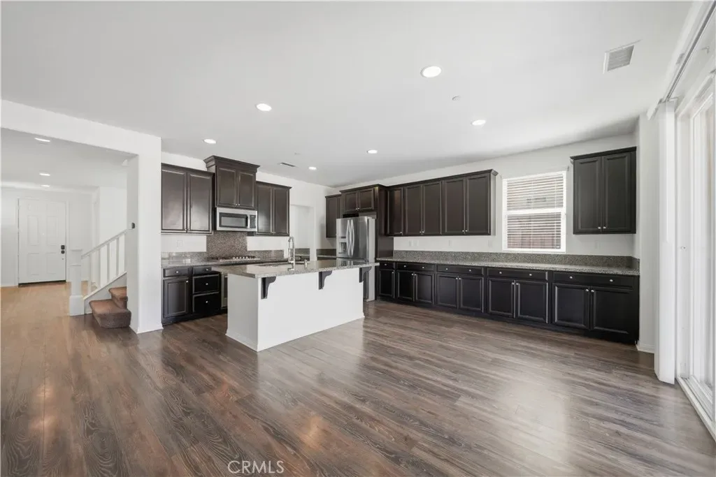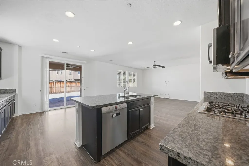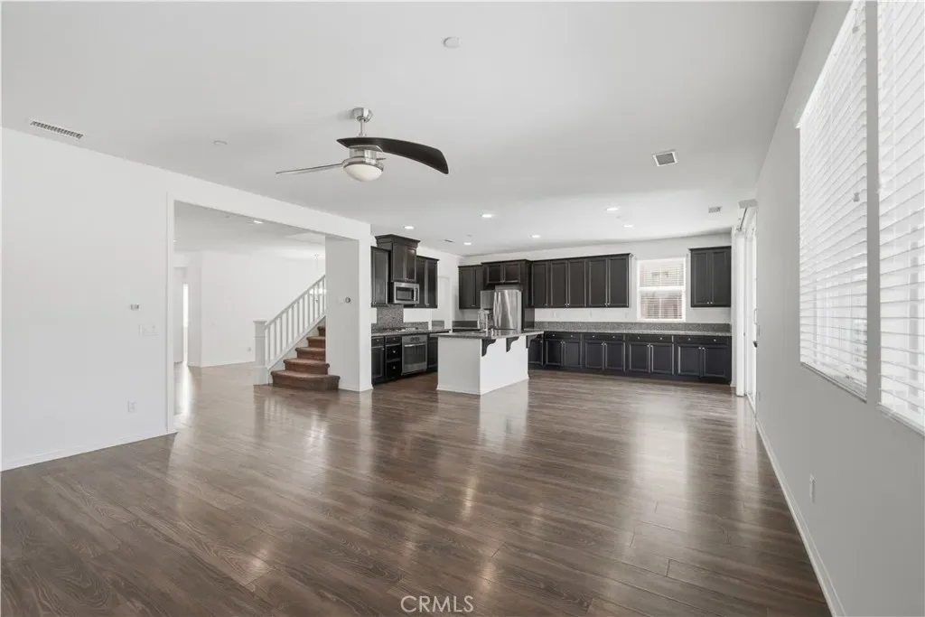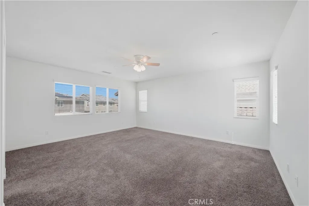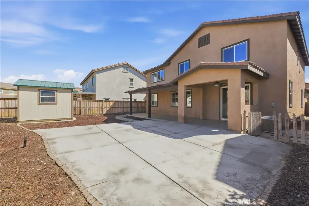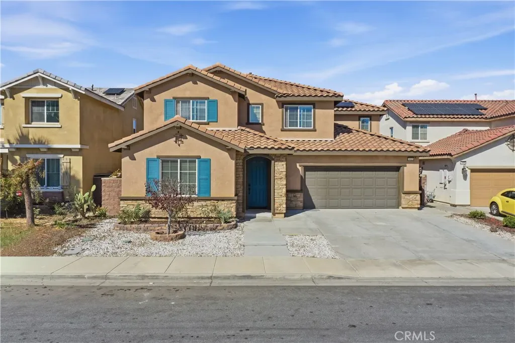 Welcome to this beautifully maintained 4-bedroom, 3-bathroom contemporary home offering 2,586 square feet of well designed living space, ideally situated on a quiet cul-de-sac in the highly desirable Summerly community. With a fully paid solar power system, flexible living spaces, and stylish upgrades throughout, this home blends efficiency w modern lifestyle living. Step inside to discover a freshly painted interior throughout and attractive laminate flooring on the entire first floor, creating a clean, cohesive look. There is a downstairs bedroom and full bathroom, ideal for guests, extended family, or a private home office. Just off the entry, a generously sized formal dining room offers flexibility—perfect as a traditional dining space, home gym, homeschooling area, creative studio, or additional living room. A butler’s pantry connects the dining area to the kitchen. The chef-inspired kitchen is great for everyday living, featuring granite countertops, stainless steel appliances, abundant cabinetry, a spacious center island with breakfast bar seating, and a comfortable informal dining area. The kitchen opens directly to the large family room, creating a warm and inviting gathering space ideal for hosting friends and family. Upstairs, the home continues to impress with a huge loft area, offering a versatile second living space. Two secondary bedrooms share hallway bathroom, while the expansive primary suite offers a relaxing retreat with dual sinks, a separate soaking tub and shower, and a walk-in closet with a built-in organizer system. Outdoor living is just as inviting. Glass sliding doors off the kitchen dining area lead to a large covered patio with stamped concrete and ceiling fans, creating the perfect shaded space for relaxing afternoons, outdoor dining, and weekend gatherings. The generous backyard offers endless possibilities and includes a finished detached backyard structure, ideal as a private office, gym, or creative studio. In addition, the tandem section of the garage has been converted into a bonus living space with its own split heating and cooling system, providing even more flexibility for today’s evolving lifestyle needs. Located within the resort-style Summerly master-planned community, residents enjoy access to multiple swimming pools, clubhouse, parks, playgrounds, and beautifully maintained recreational spaces. The home is also conveniently located near shopping, schools, dining and the Lake Elsinore Storm baseball stadium.