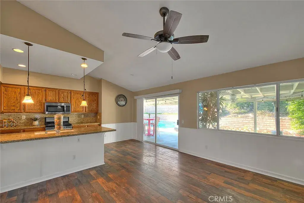 Welcome to this beautifully maintained 3-bedroom, 2-bath home with a versatile bonus 4th room perfect for an office or flex space. Featuring laminate flooring throughout, this home offers an open-concept kitchen that flows seamlessly into the family room with a cozy fireplace—ideal for both everyday living and entertaining. Step outside to your private backyard oasis with a sparkling pool and oversized spa. Conveniently located in North Lake Elsinore, close to the I-15 freeway, shopping, dining, and recreation. No HOA and close to the lake—this home truly has it all!