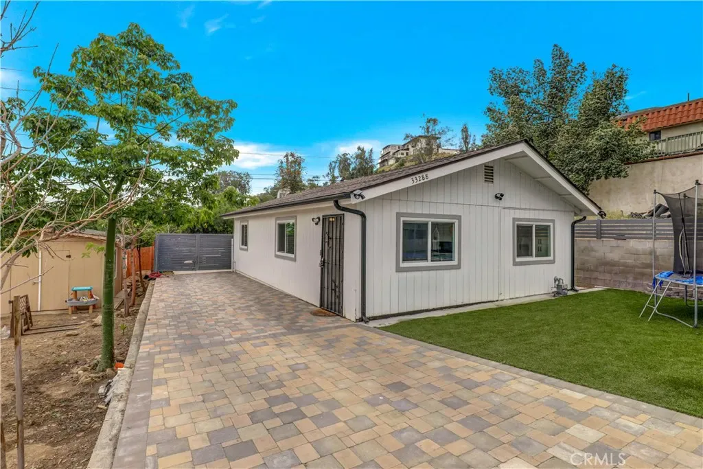 ONE HOUSE ON TWO LOTS. Second lot has water meter already installed. Welcome to this beautifully remodeled 2-bedroom, 1-bath home , offering the perfect blend of modern upgrades, outdoor living, and endless potential. Ideal for anyone looking for space and flexibility, this property includes an adjoining vacant lot—creating endless possibilities to expand, build an additional residence, add a pool or shop, or design your own private retreat. Inside, you’ll find a stunning open-concept kitchen featuring a large center island, quartz countertops, upgraded appliances, and abundant cabinetry—perfect for both everyday living and entertaining. Tile flooring throughout adds durability and a clean, modern aesthetic, while custom window shades provide a polished finishing touch. Step outside and enjoy a yard designed for relaxation, complete with a charming patio and firepit, ideal for cozy evenings under the stars or gathering with friends. Conveniently, the main residence has an individual room (which is included in the overall square footage) set-up currently as a laundry room and storage room as well as the adjoining/included additional parcel has a large storage shed with plenty of space for tools, toys or even a home gym. The property offers a peaceful, almost mountain-like setting, with views of the surrounding mountains and nearby lake, creating a serene and scenic atmosphere. The expansive double-lot provides ample room for outdoor living, gardening, RV or equipment storage, and future development. Located just a quarter mile from the lake, you’ll enjoy easy access to outdoor recreation, beautiful views, and a lifestyle that embraces both tranquility and adventure.