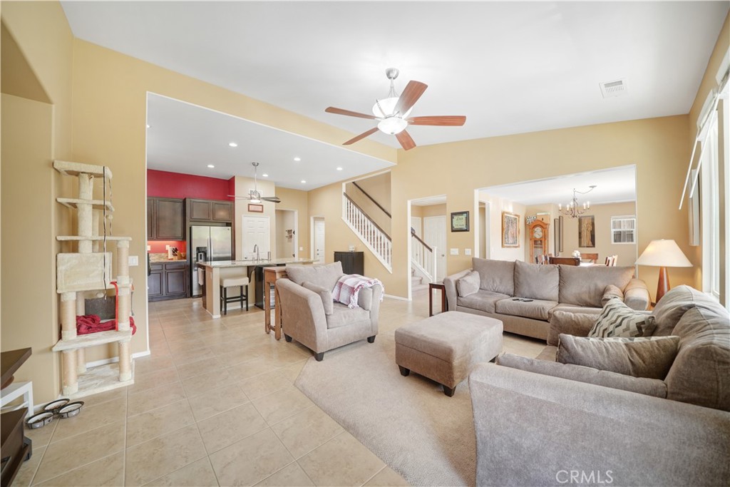 This stunning turnkey home tucked in the community of Canyon Hills offers access to community pool, spa, BBQ areas, and scenic walking and hiking trails. The home features two versatile downstairs bonus rooms, an open floor plan kitchen with granite counters, and a living room designed for effortless entertaining that peaks into the adjacent dining room. The backyard showcases stunning mountain views, a covered patio and ample concrete space for dining, barbecues, and gatherings. Upstairs includes three spacious bedrooms, including a primary suite with a separate walk-in shower and soaking tub, plus plenty of storage throughout.