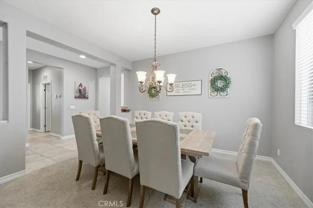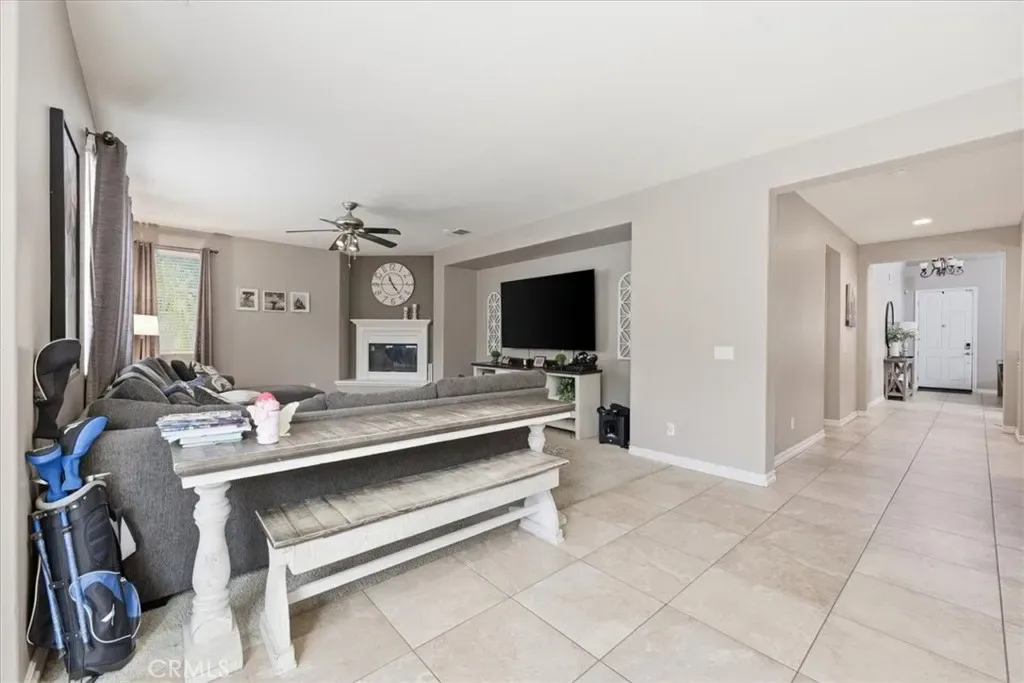 A grand entry welcomes you into a spacious living room with vaulted ceilings and abundant natural light. Upgraded 20-inch tile flooring flows throughout the main level, leading past a generously sized downstairs bedroom and full bath, ideal for guests or multi-generational living. The formal dining room offers ample space for hosting large gatherings and special occasions.