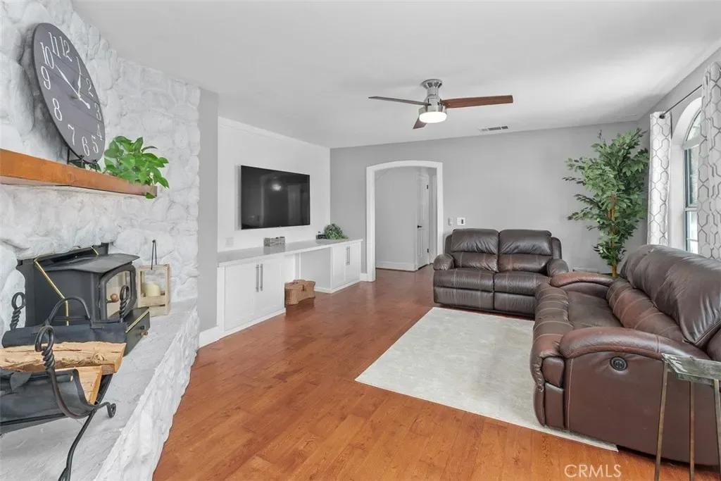 Interior Features & Upgrades. Engineered hardwood floors (2009–2010). Living room with shiplap accent wall + wood-burning insert & blower