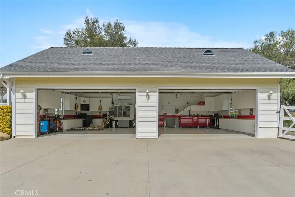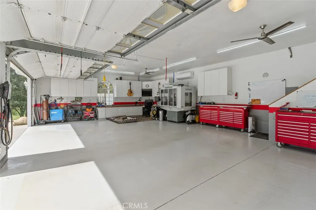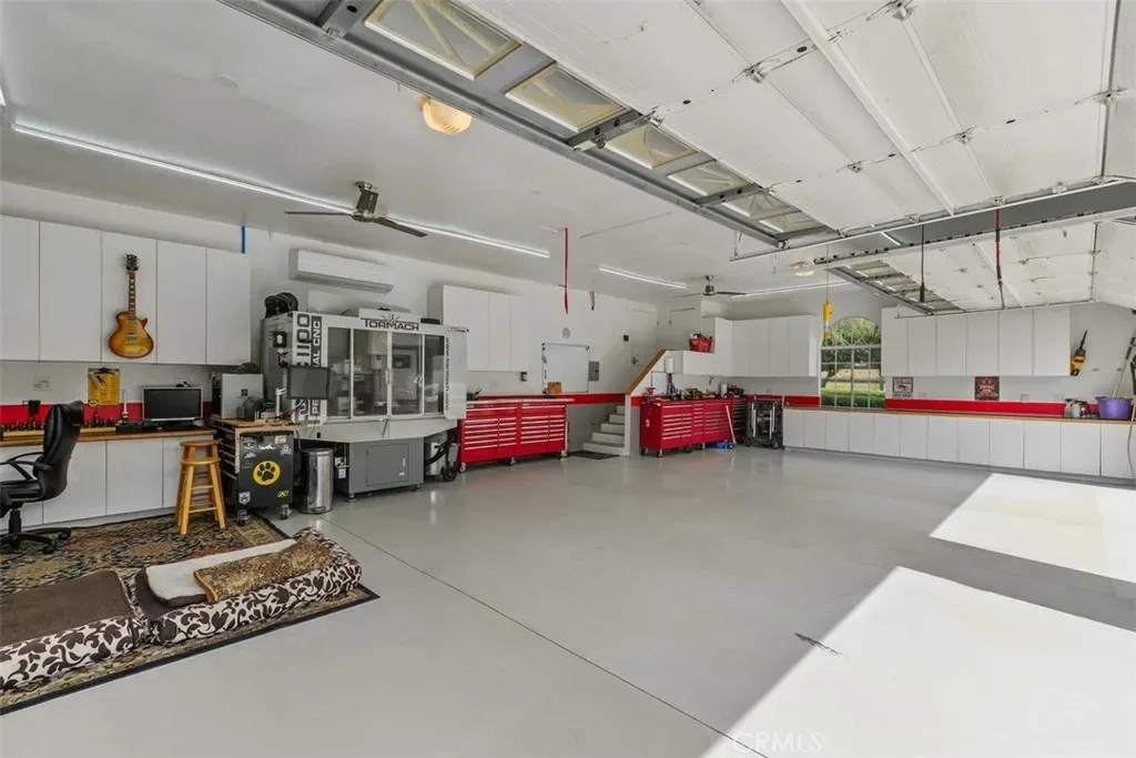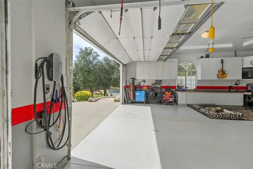 The oversized 4-car garage is a dream for car collectors, mechanics, and creatives: Drywalled and air-conditioned. Sealed epoxy flooring. Overhead compressed air lines and pull-down power. Dedicated office/work zone with built-in lighting and function. More than just storage—this is a serious workspace for those who build, tinker, or restore.