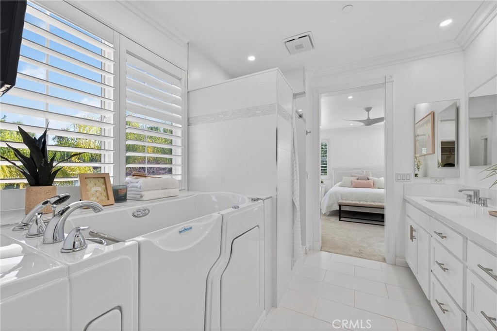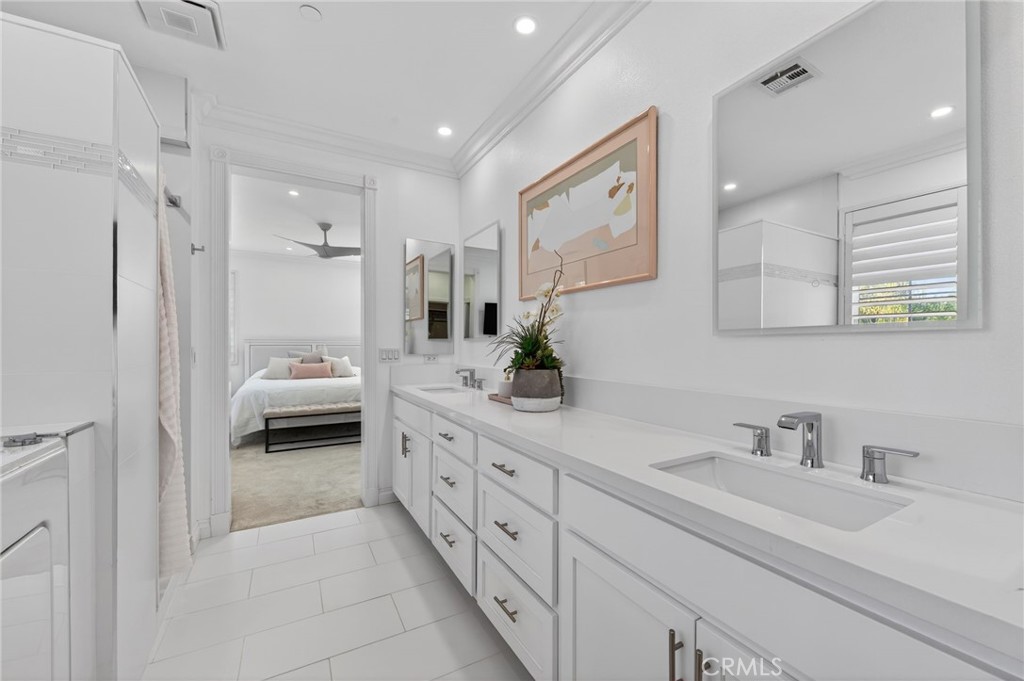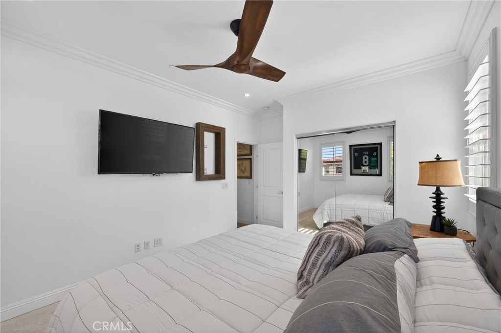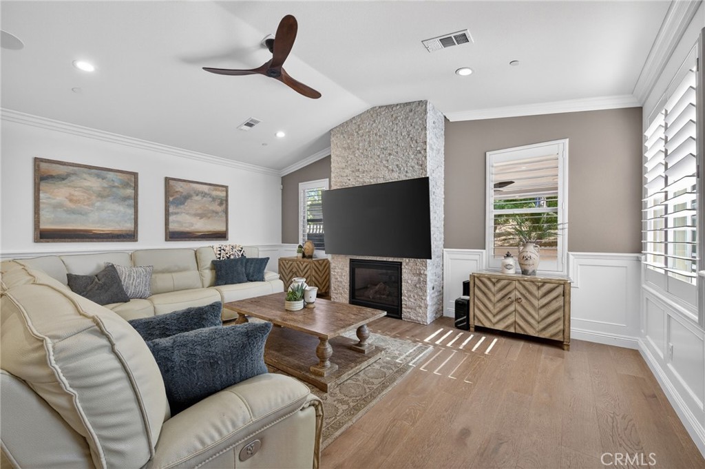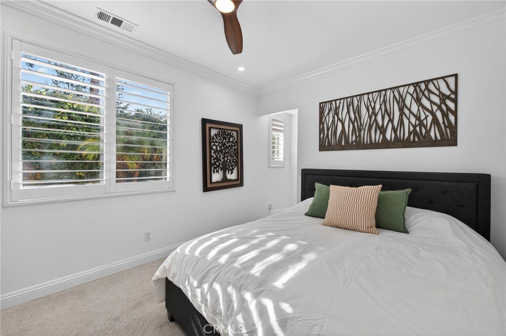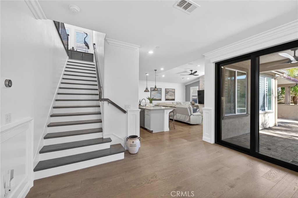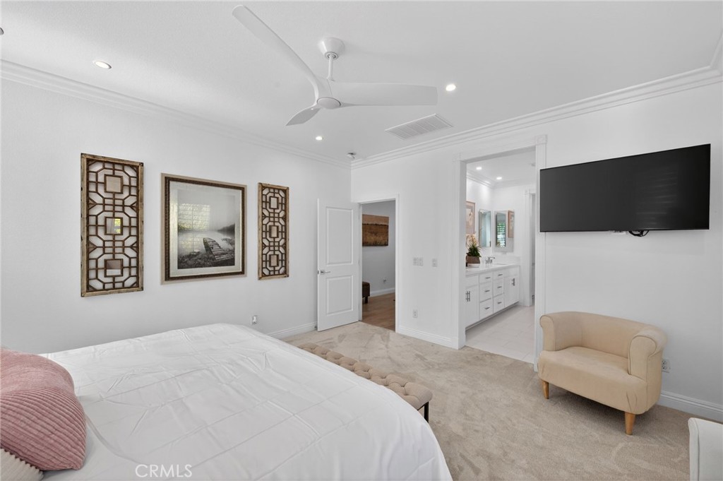 Welcome to this beautifully upgraded former model home, perfectly situated on a desirable corner lot featuring 4 bedrooms and 3 full bathrooms. Designed with style and functionality in mind, this home showcases premium finishes and thoughtful upgrades throughout such as crown molding, new sliders, plantation shutters, and ceiling fans in all the rooms.