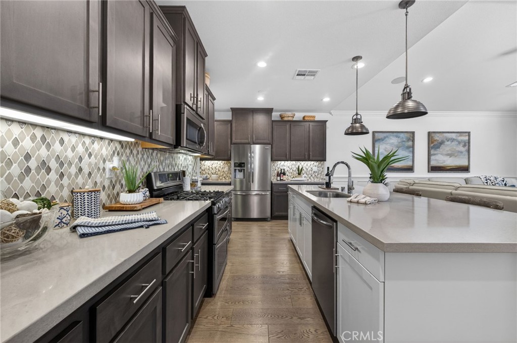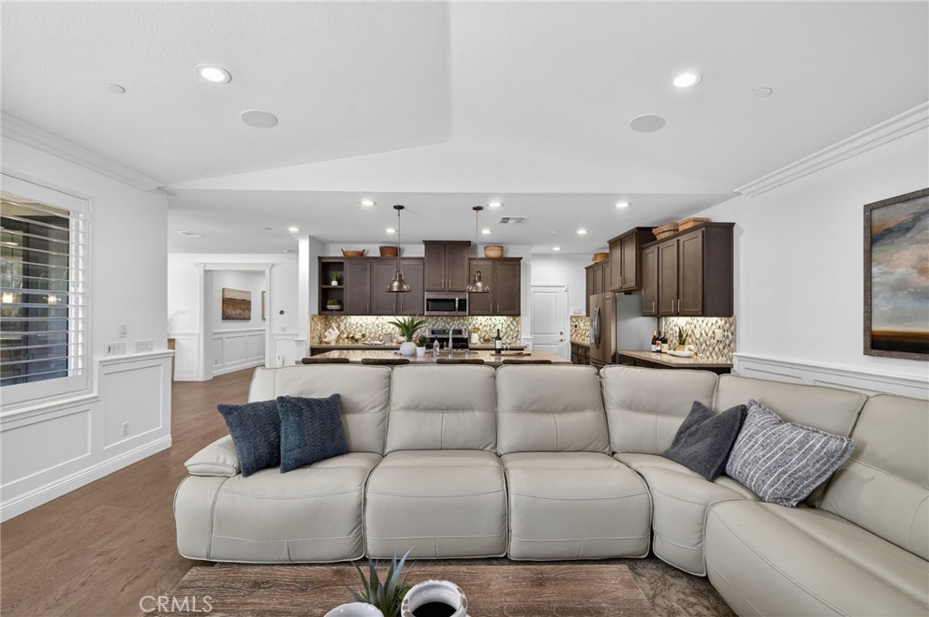 Step inside to discover a bright, open floor plan with designer touches, upgraded flooring, and elegant details that reflect its model home status. The spacious living areas flow seamlessly into the kitchen and dining spaces, creating an ideal layout for both everyday living and entertaining. The living room offers a surround sound system that is perfect for movie nights or enjoying your favorite music.
