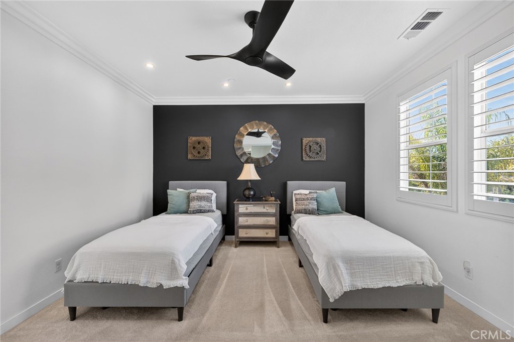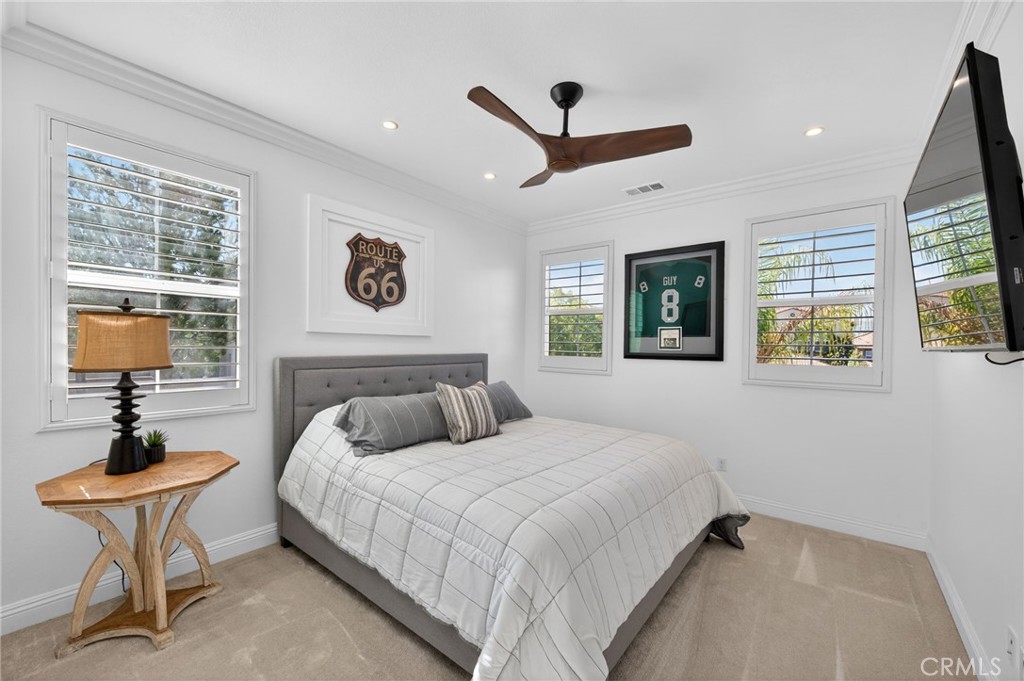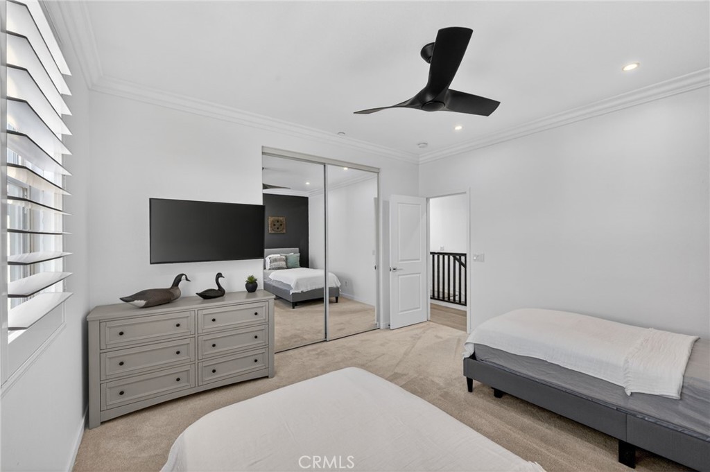 Upstairs, you’ll find additional generously sized bedrooms and comfortable living space designed for relaxation. The primary suite offers plenty of natural light and a custom built closet.